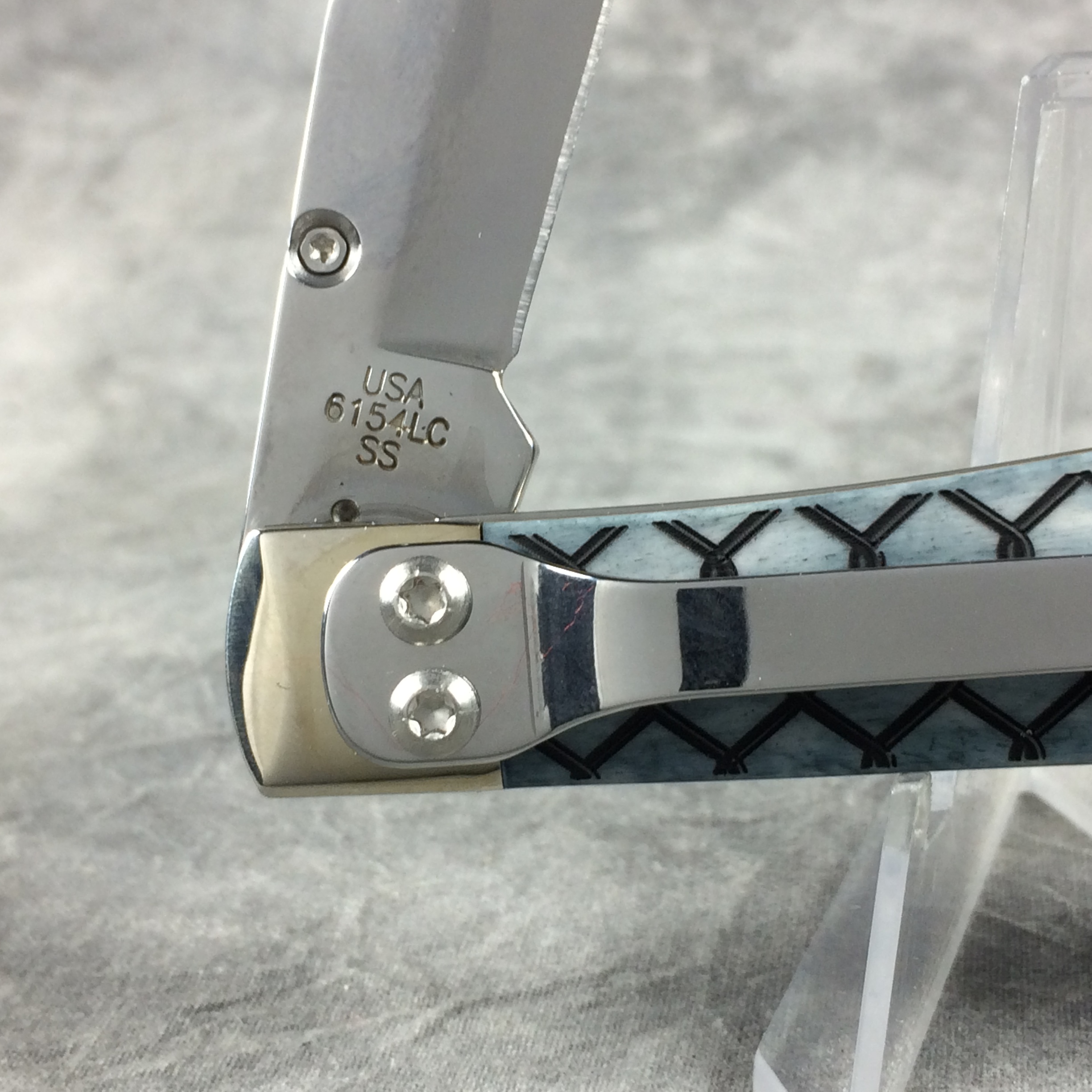 You have: 2015 Case 6154 LC SS Smooth Gray Chain Link Laser Etch Trapperlock