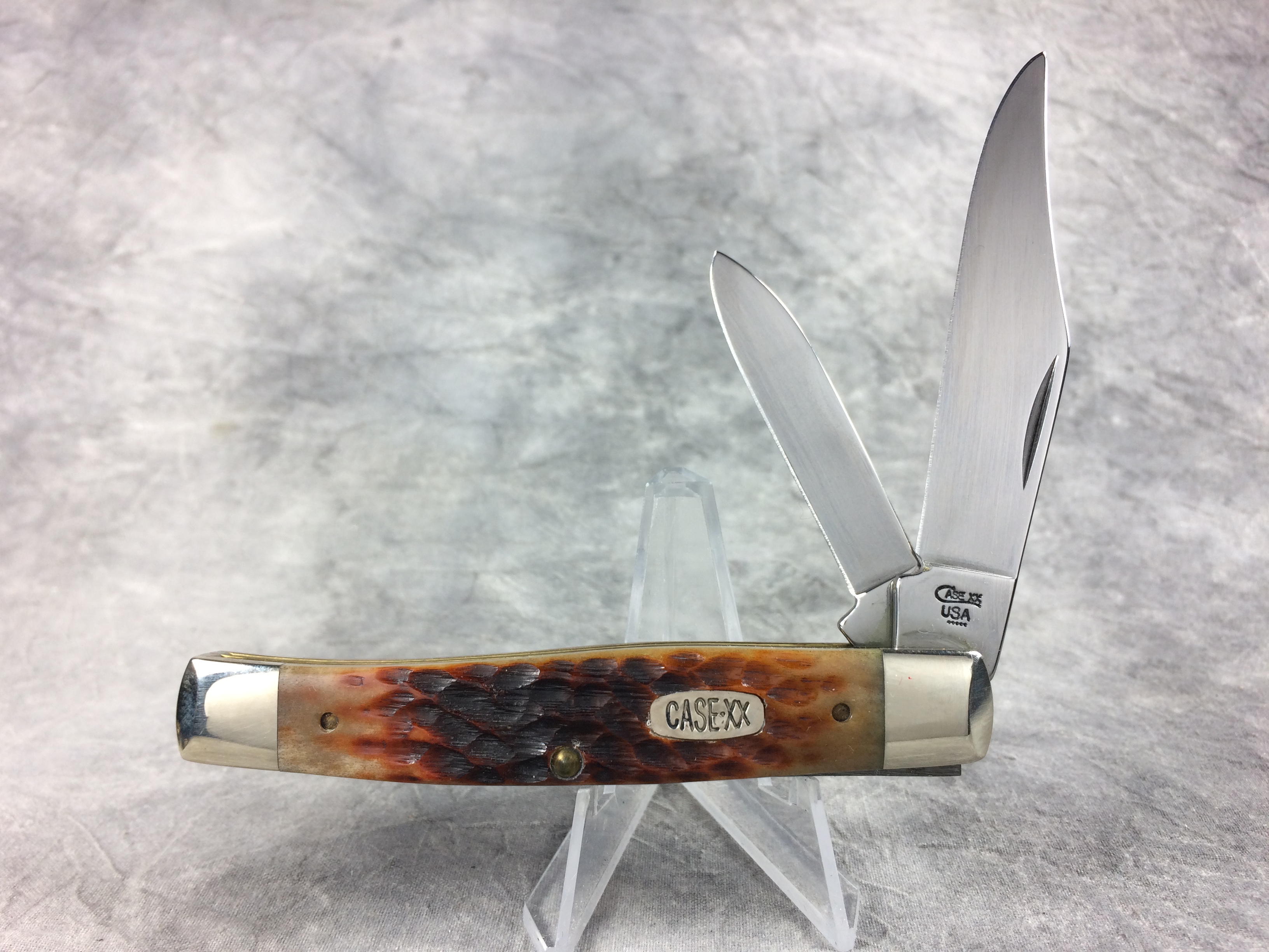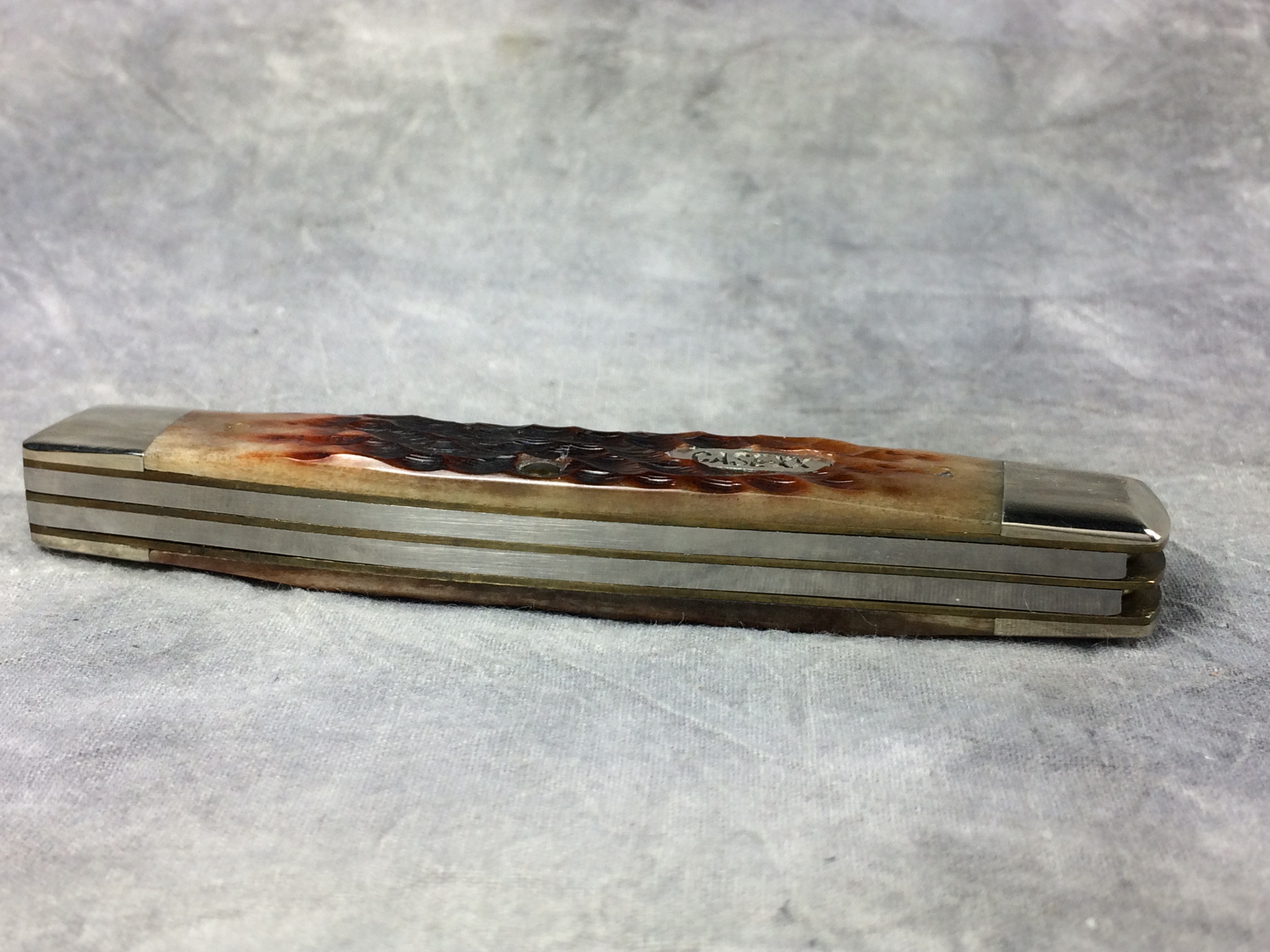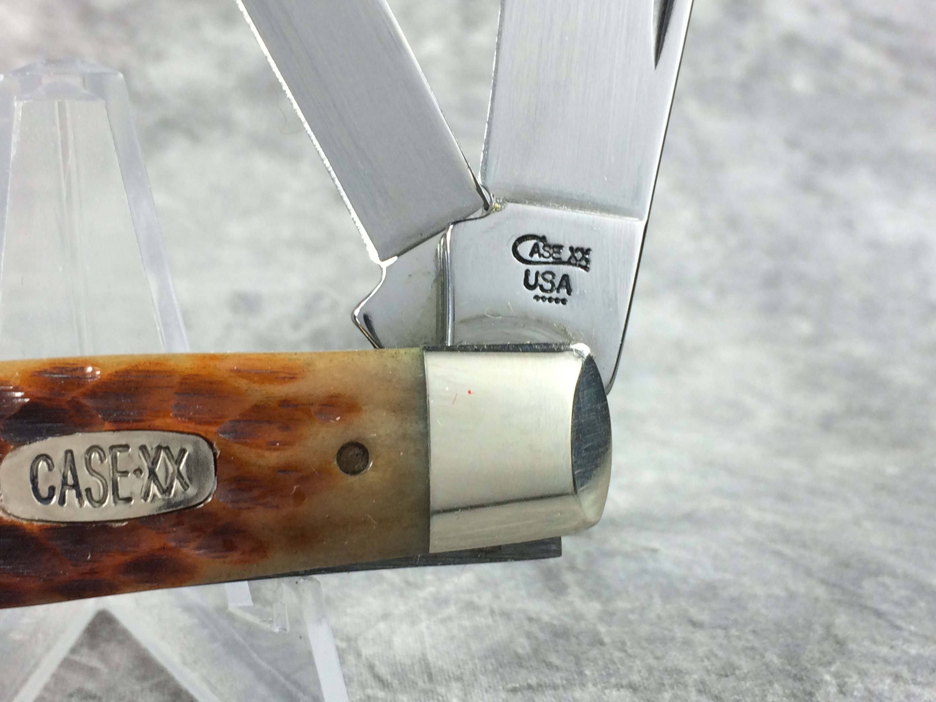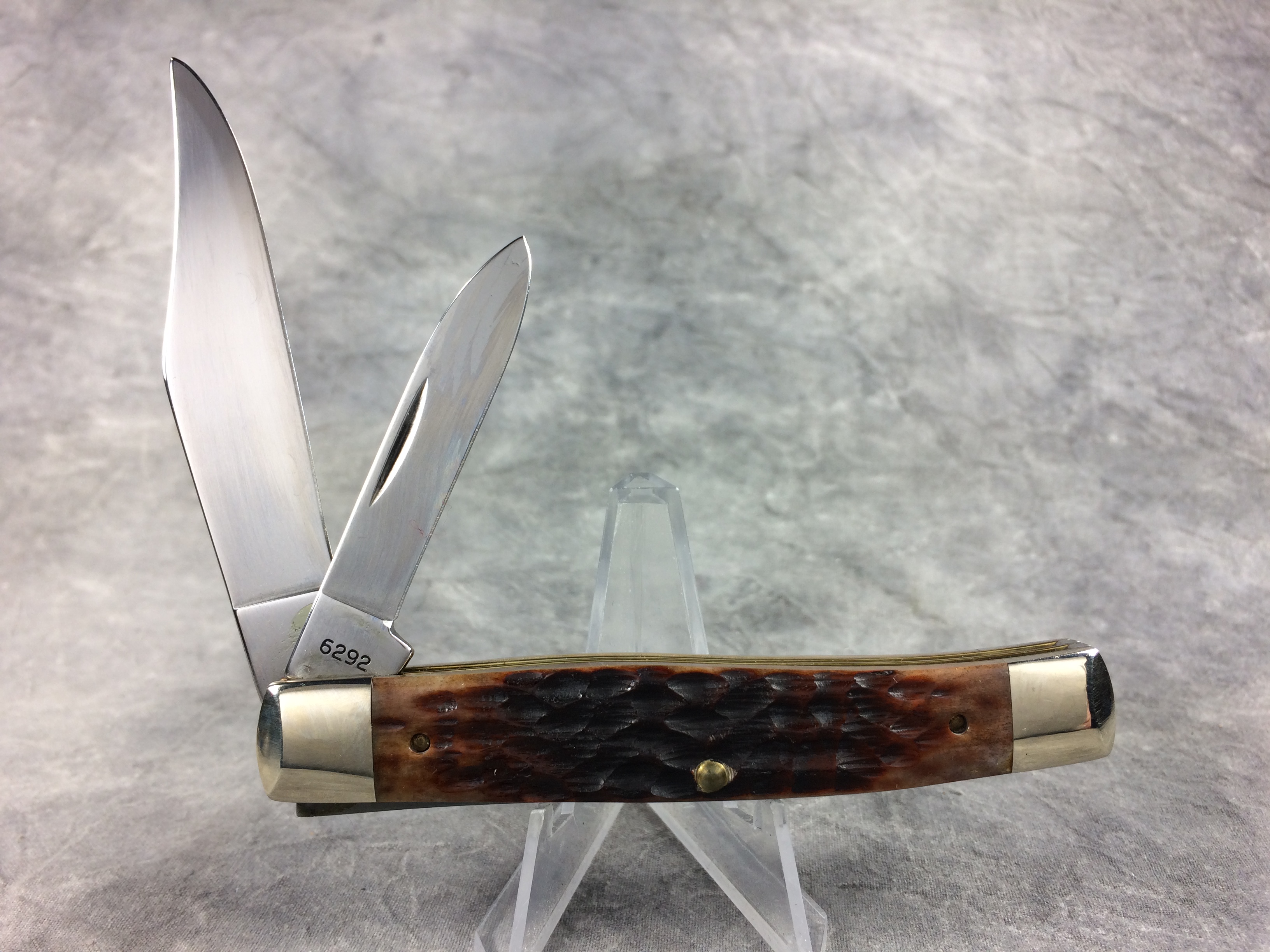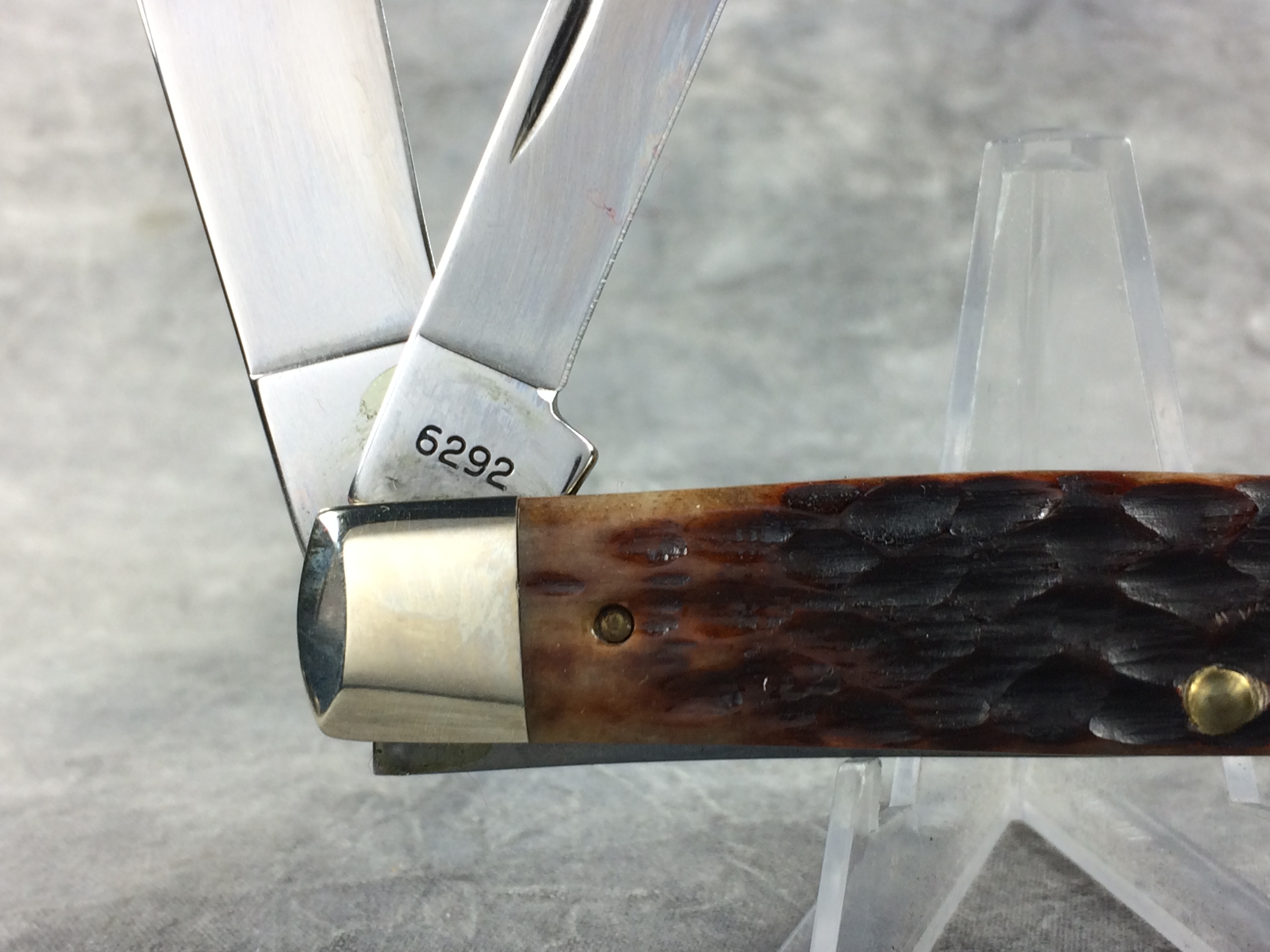 December 04, 2025 - 4 inches closed. 7 inches open. Made in USA. "CASE XX USA ***** " (5 dot with lightning bolt S) and "6292" tang stamps. Oval close-C block letter "CASE XX" shield. Chrome Vanadium blades. Brown Jigged Bone handle. Nickel Silver bolsters. Brass liner.