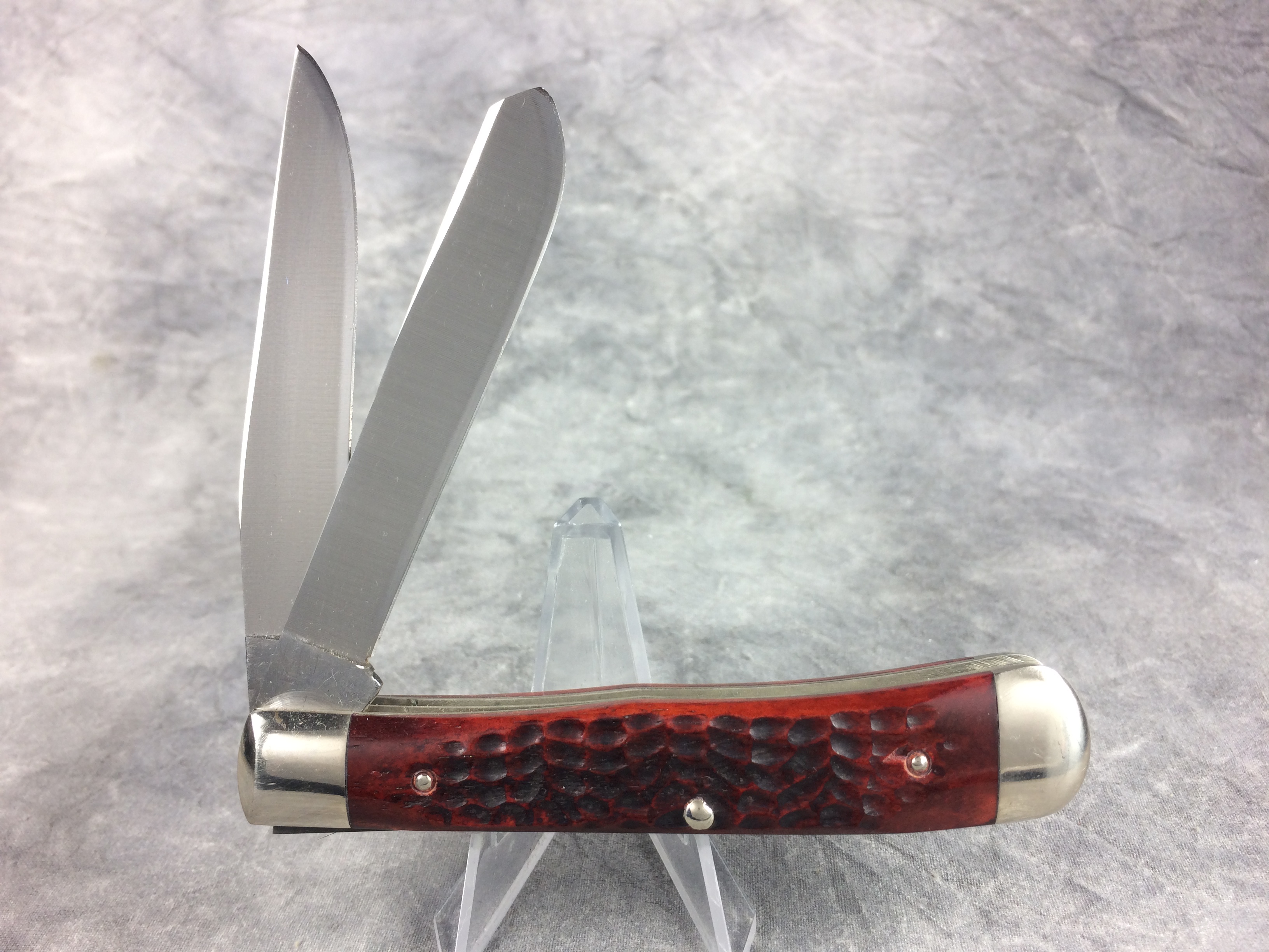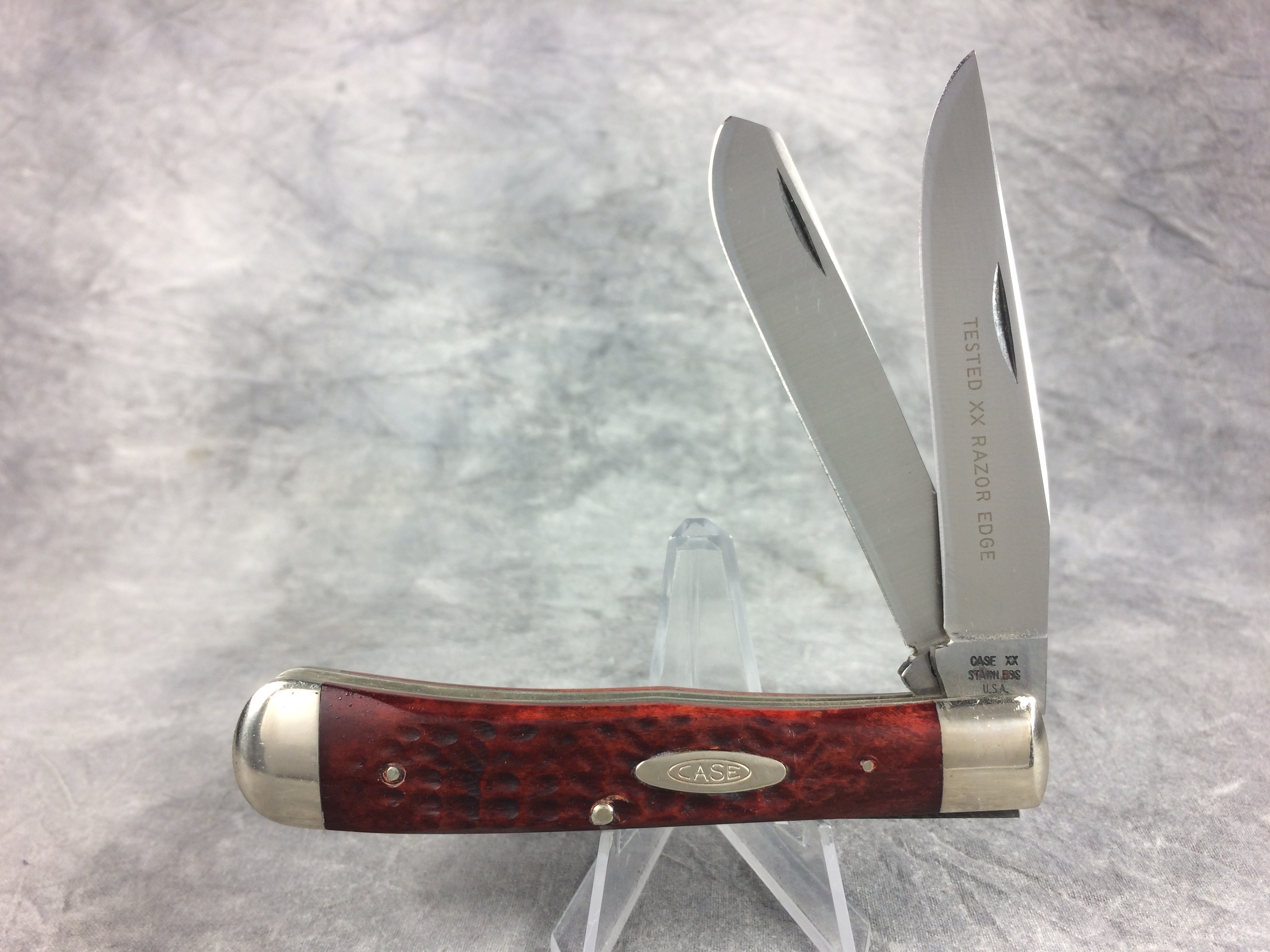 You have: 1973 CASE XX STAINLESS USA 6254 SSP Red/Brown Jigged Bone Trapper Knife