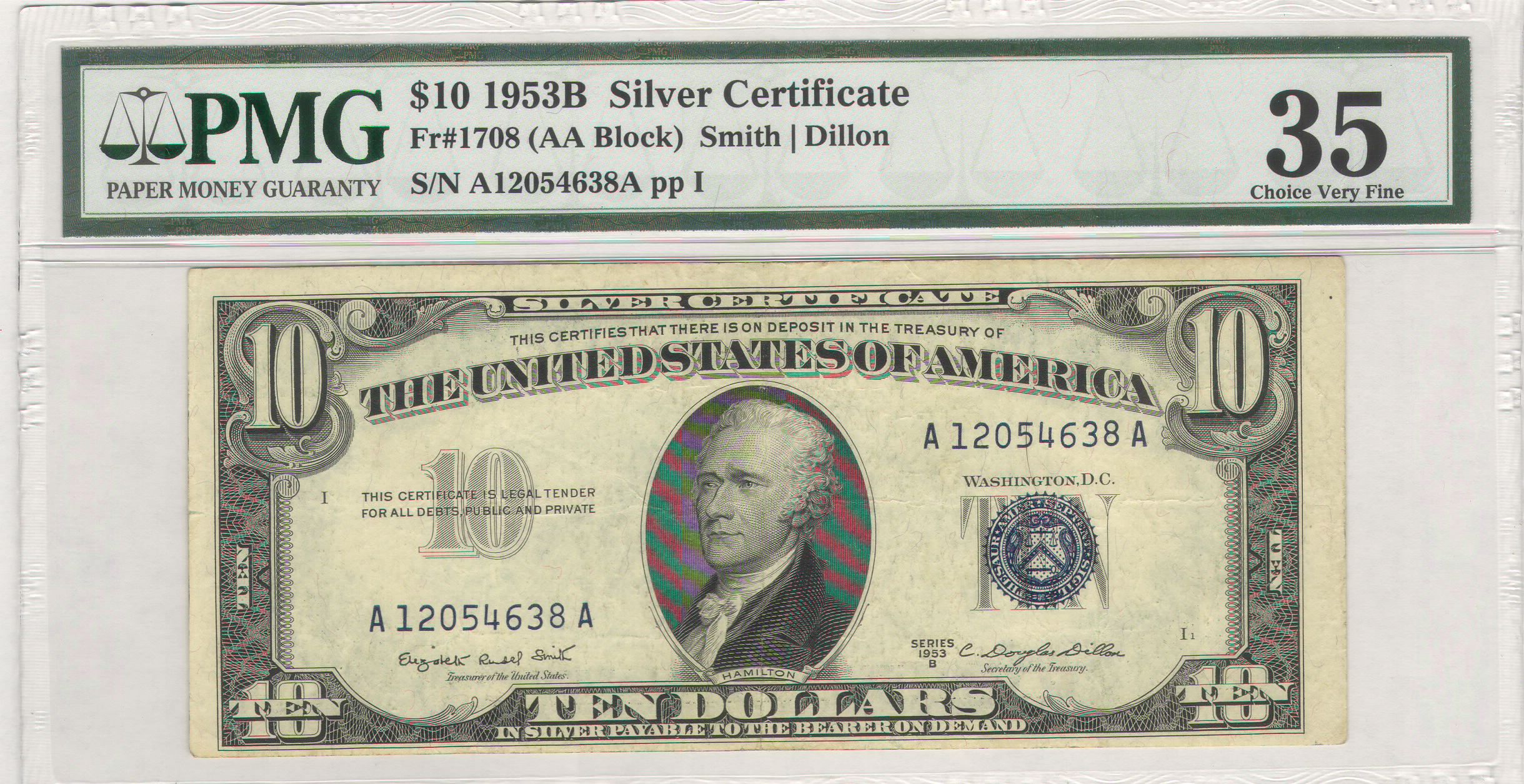 You have: (Fr-1708) 1953-B $10 Silver Certificate