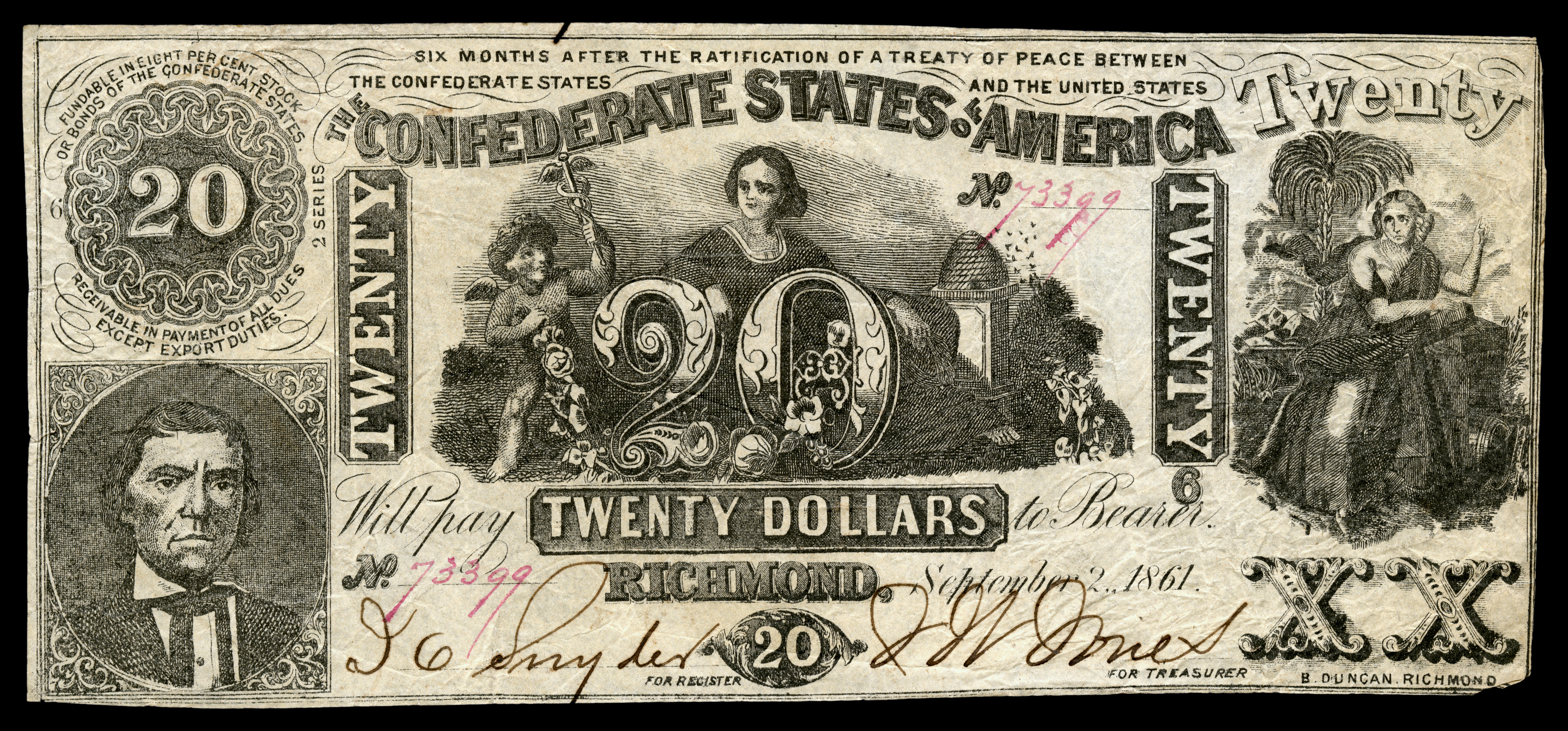 You have: (CSA T-20) 1861 $20 Confederate States of America Note