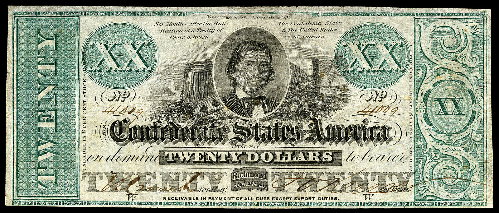 You have: (CSA T-21) 1861 $20 Confederate States of America Note