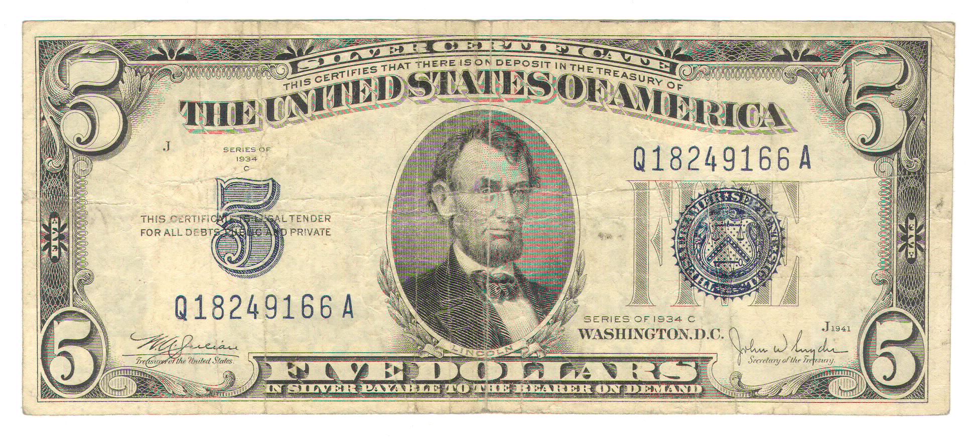 You have: (Fr-1653) 1934-C $5 Silver Certificate