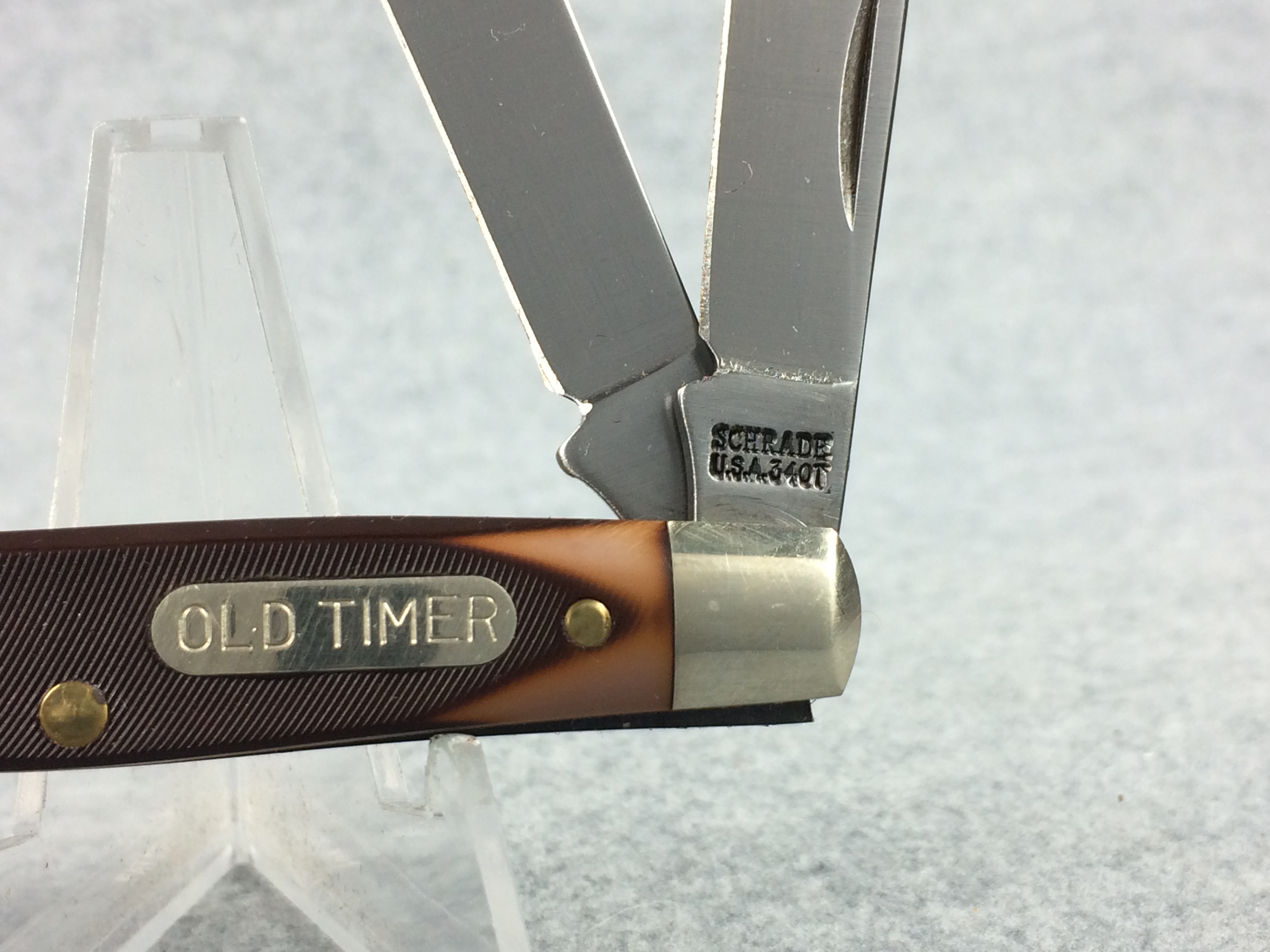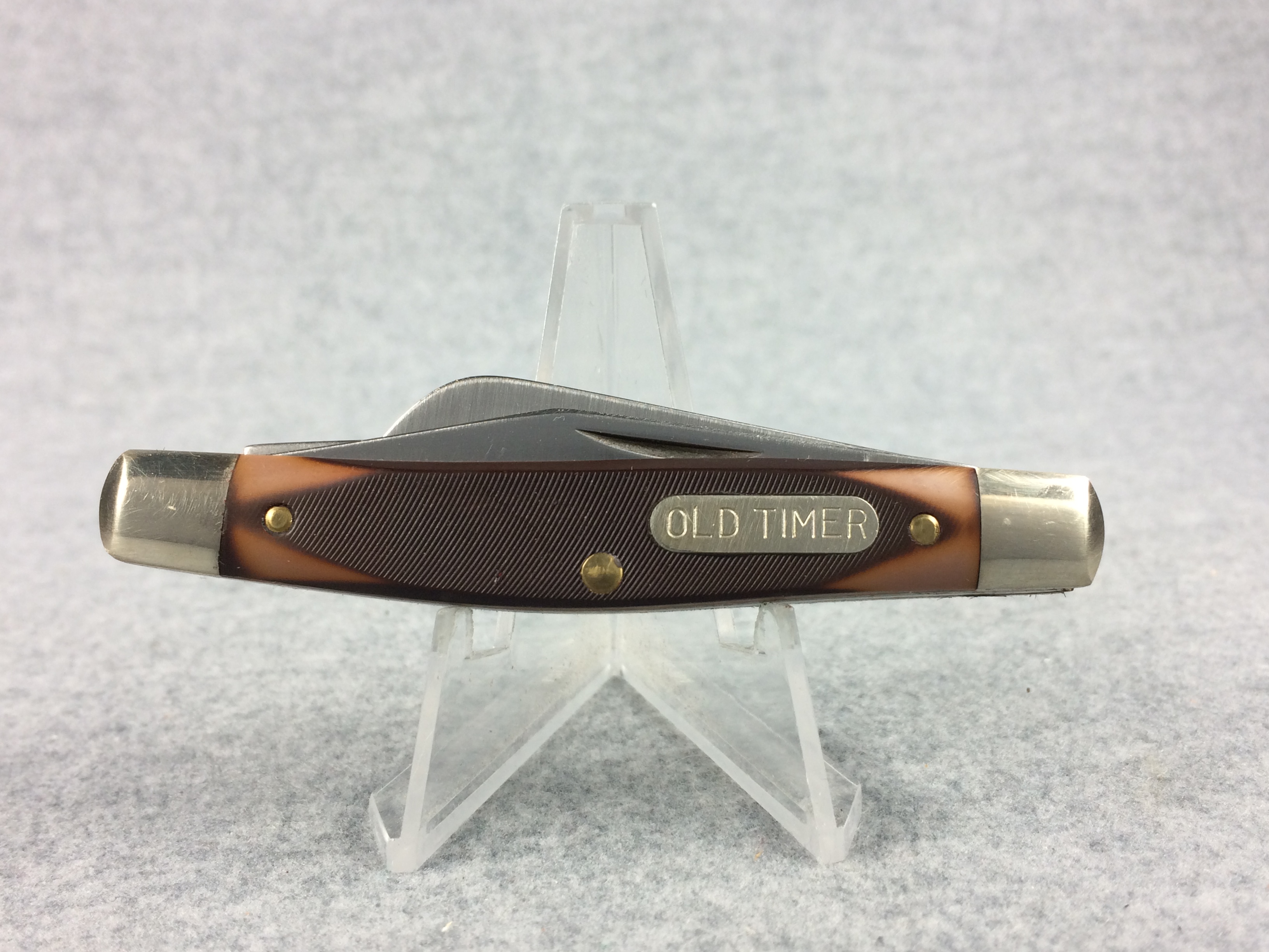 January 14, 2026 - 3-3/8 inches closed. 5-3/4 inches open. Made in USA. "SCHRADE U.S.A. 34OT" tang stamp. "OLD TIMER" shield. Sawcut Delrin handle. Nickel Silver bolsters. Brass liner. No box.