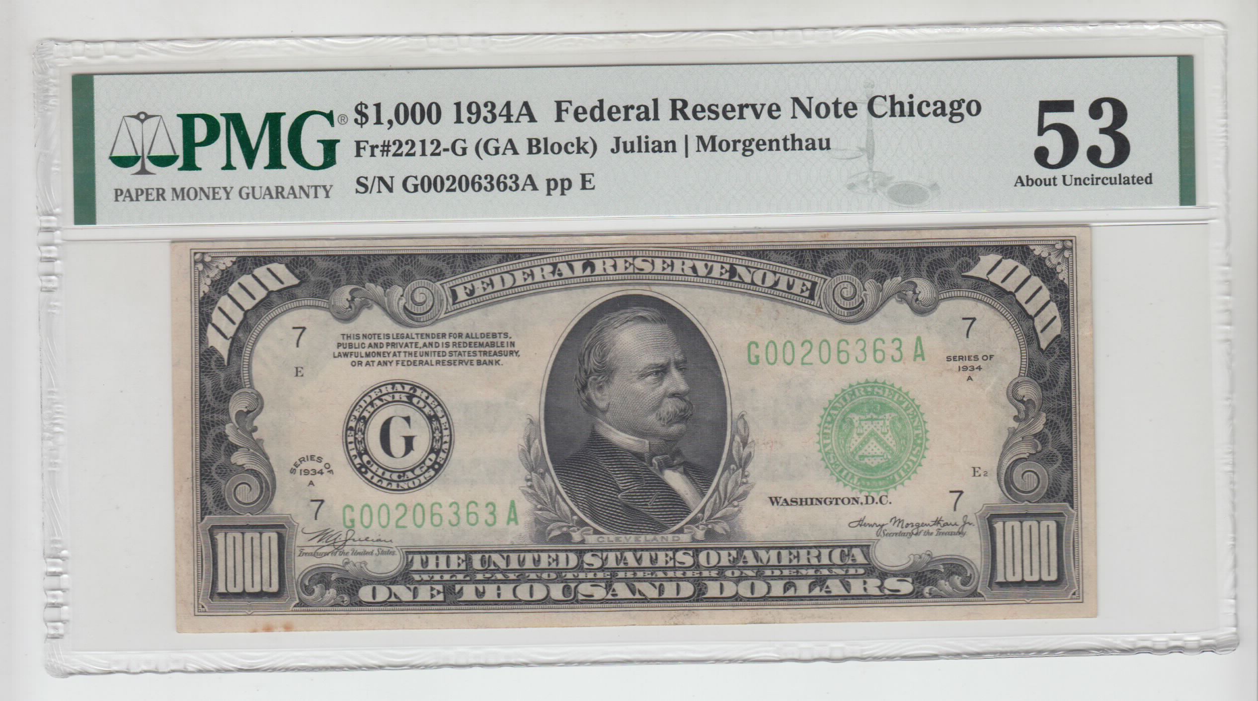 You have: (Fr-2212g) 1934-A $1000 Federal Reserve Note (Chicago)