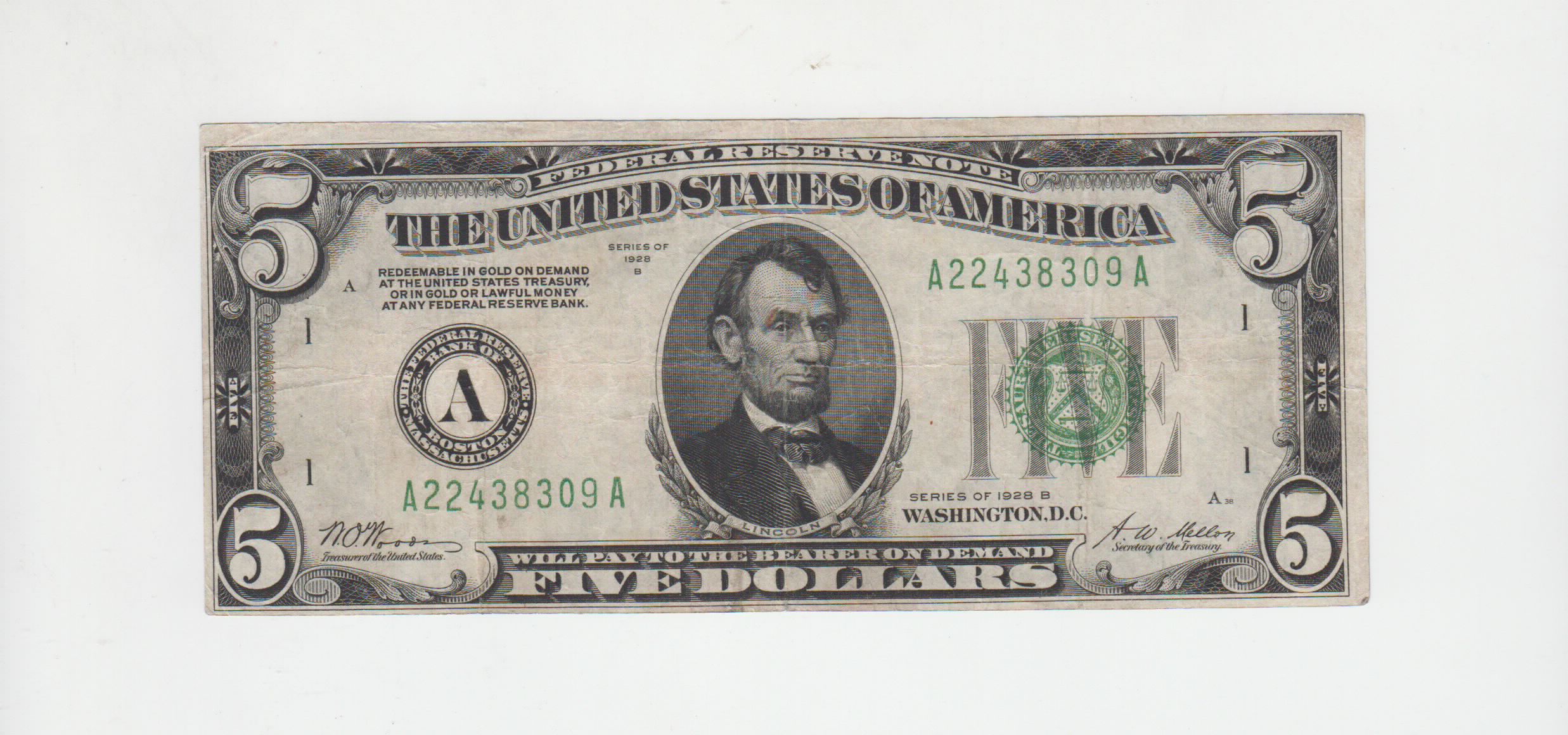 You have: (Fr-1952a) 1928-B $5 Federal Reserve Note (Boston)