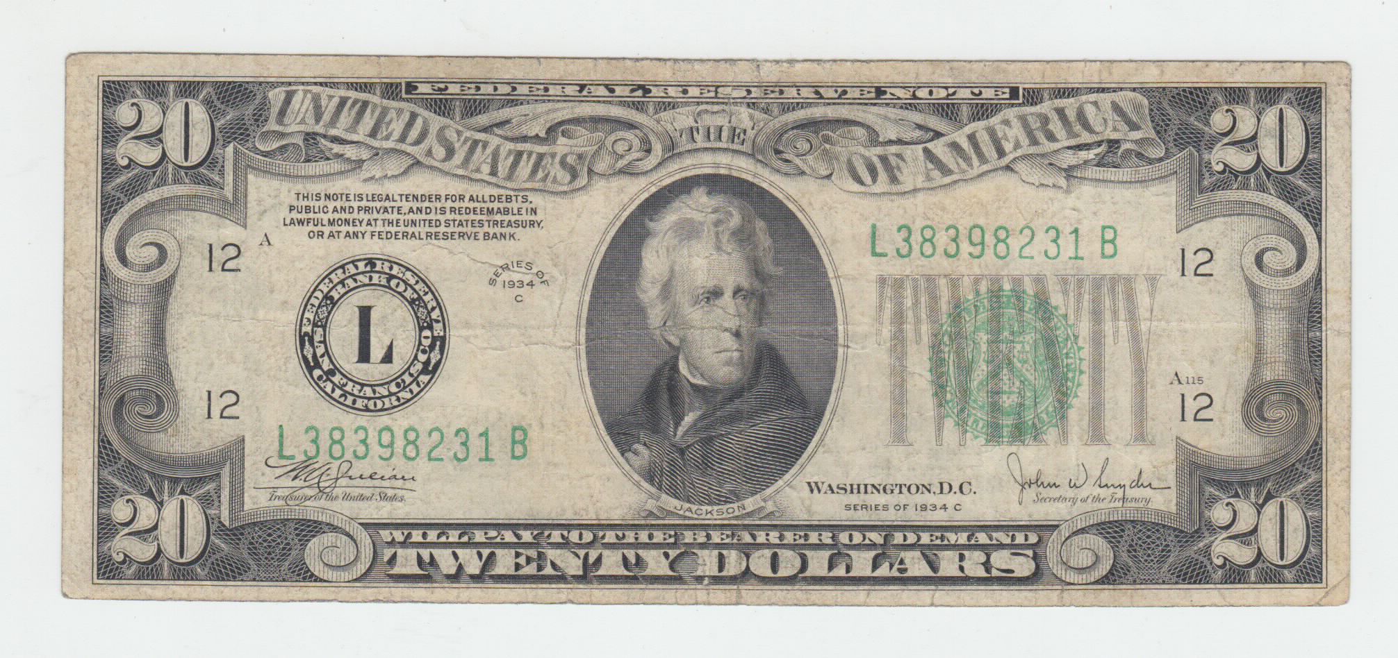 You have: (Fr-2057l) 1934-C $20 Federal Reserve Note (San Francisco)