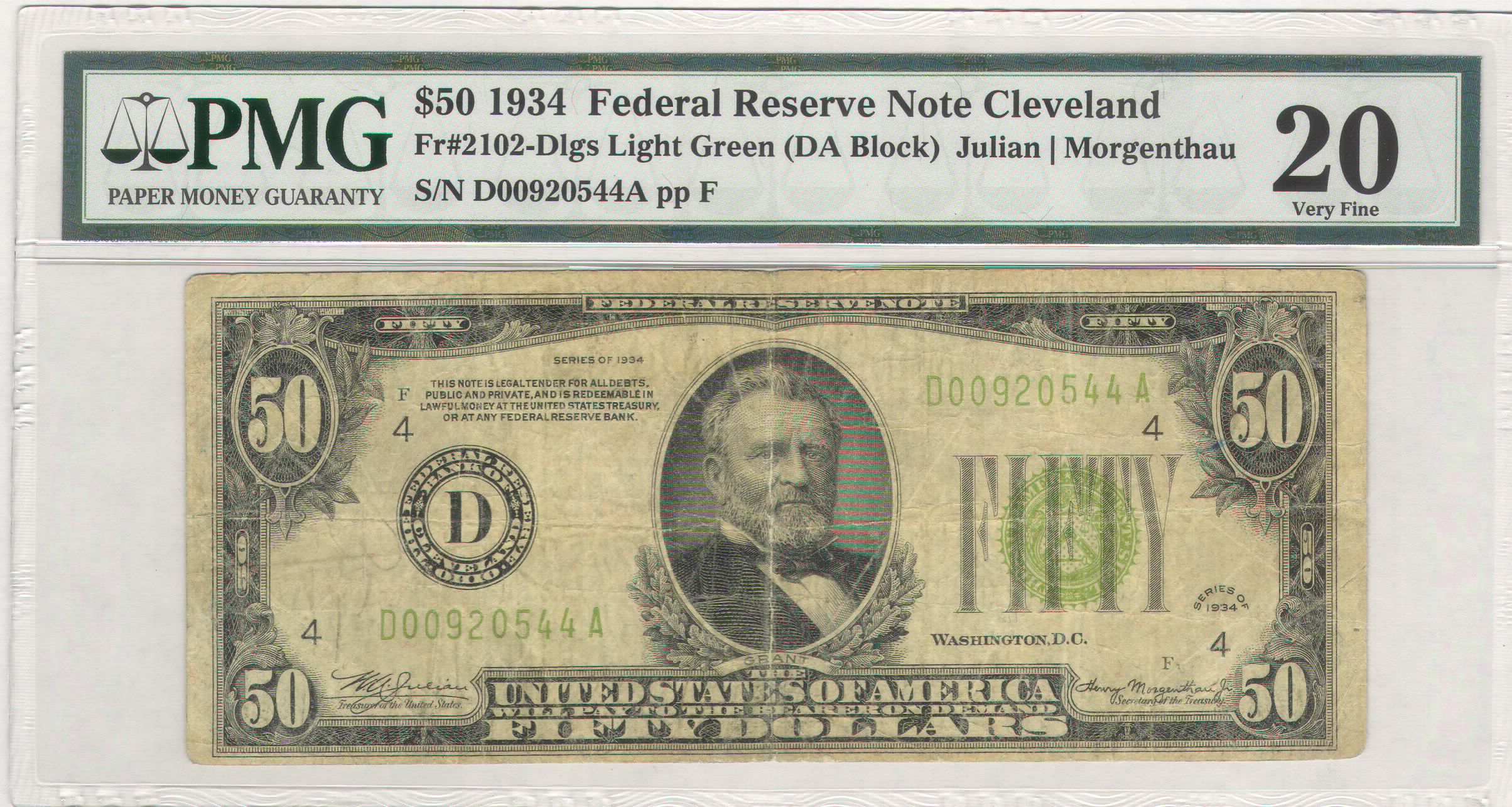 You have: (Fr-2102d) 1934 $50 Federal Reserve Note (Cleveland)