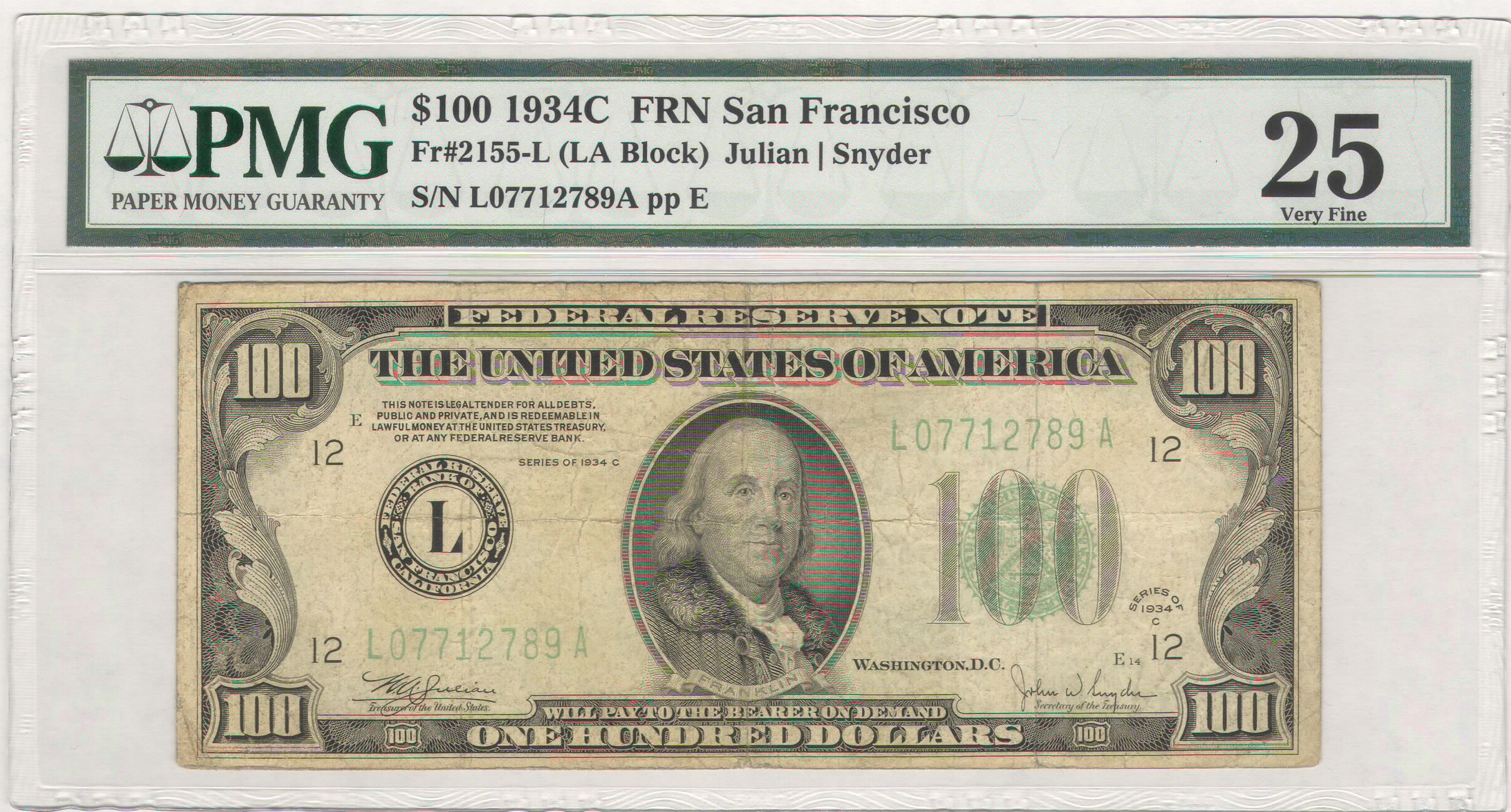 You have: (Fr-2155l) 1934-C $100 Federal Reserve Note (San Francisco)