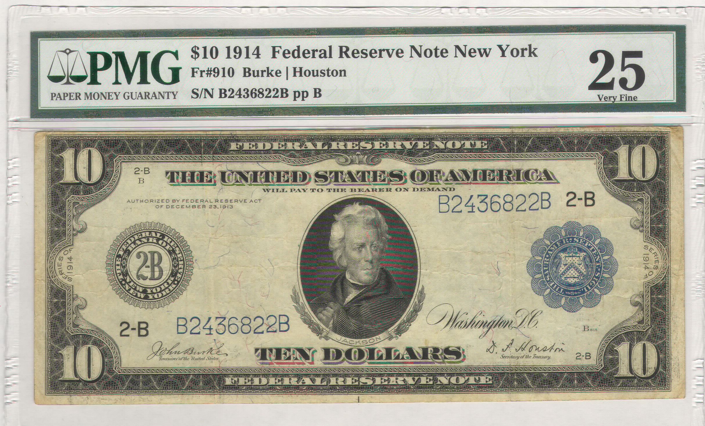 You have: (Fr-910) 1914 $10 Federal Reserve Note (New York, Blue Seal, Burke/Huston)