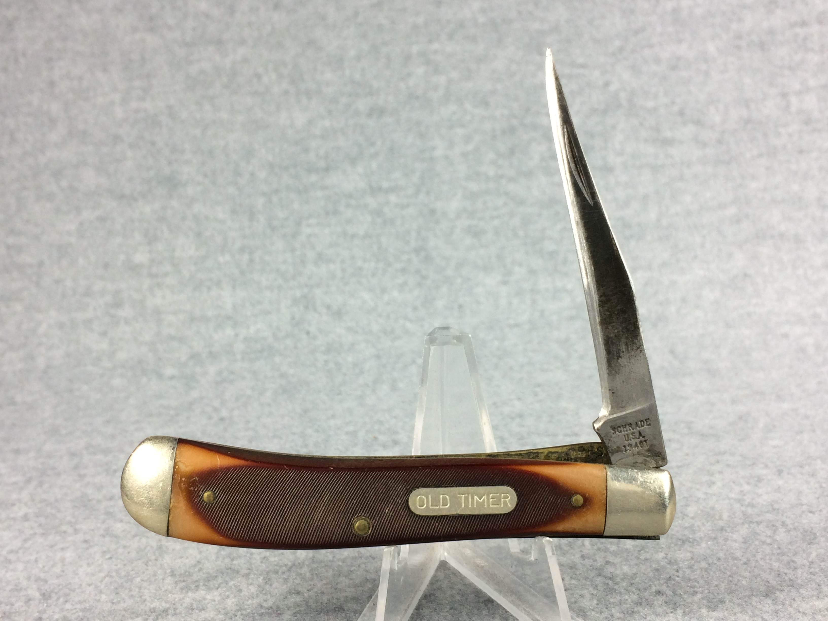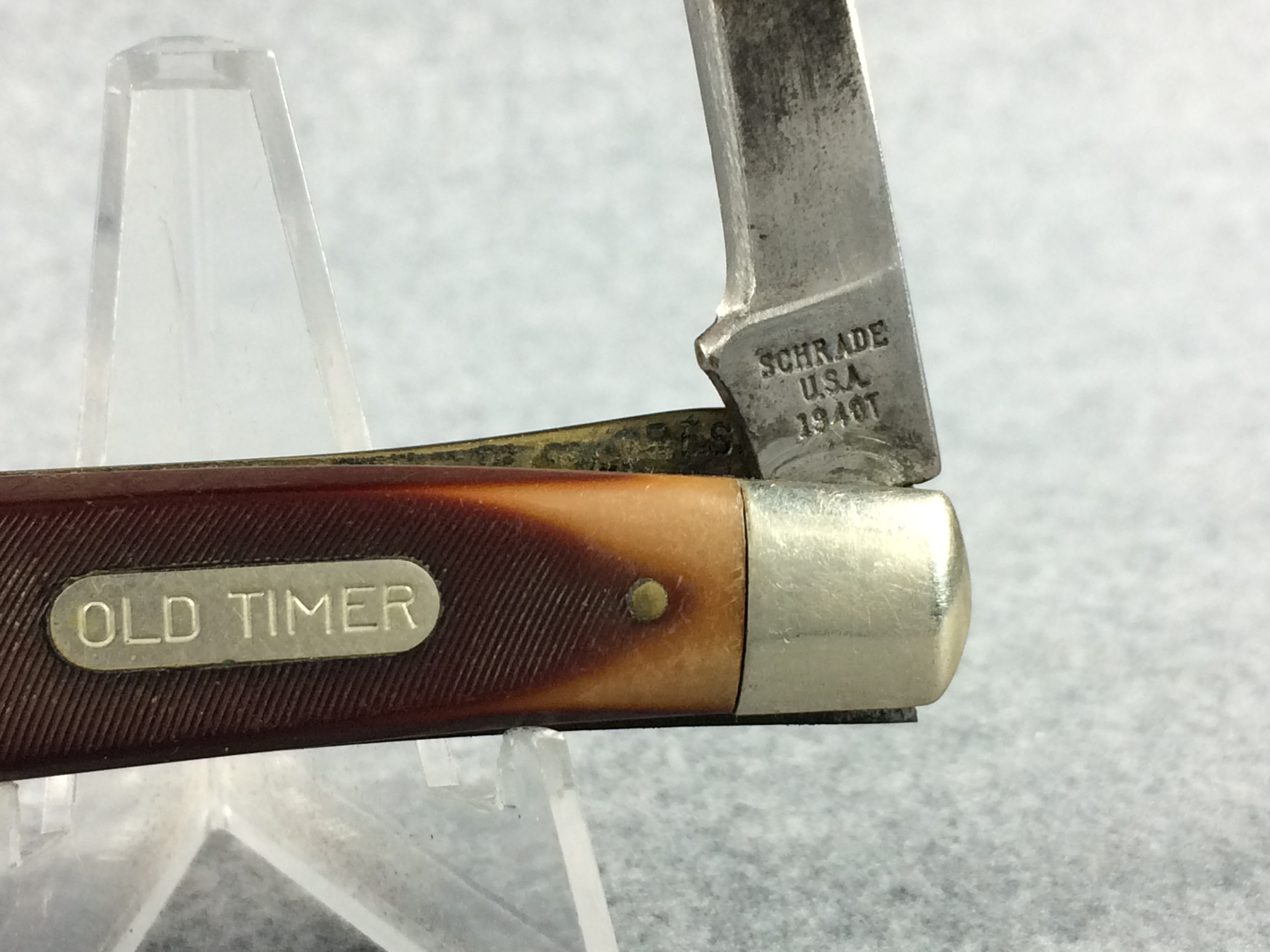 April 05, 2026 - 3-7/8 inches closed. 6-7/8 inches open. Made in USA. "SCHRADE U.S.A. 184OT" tang stamp. "OLD TIMER" shield. Sawcut Delrin handle. Nickel Silver bolsters. Brass liner.