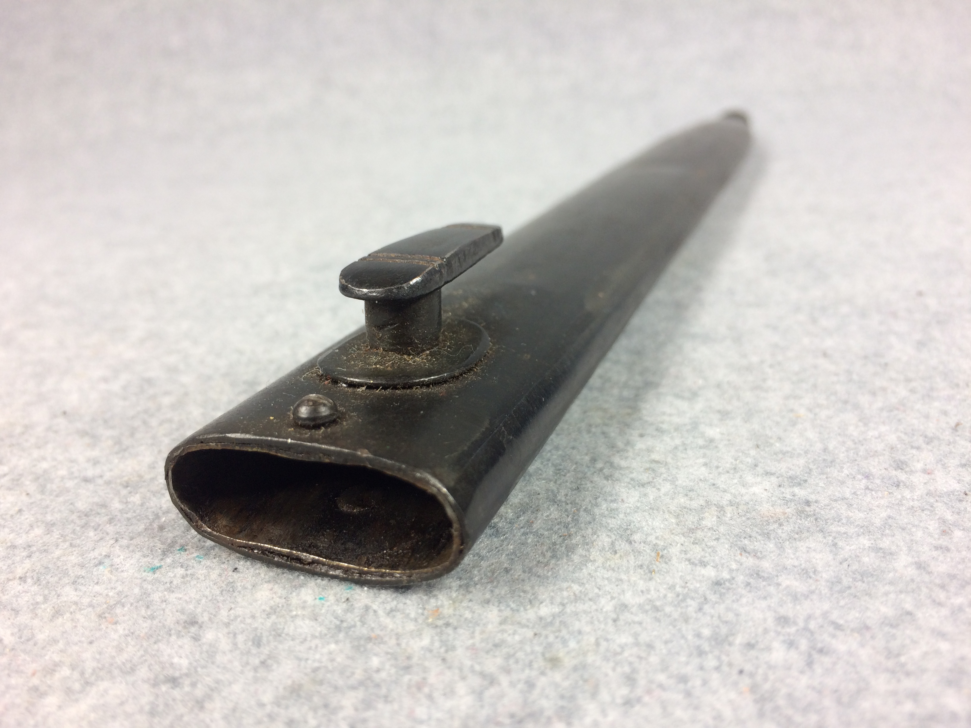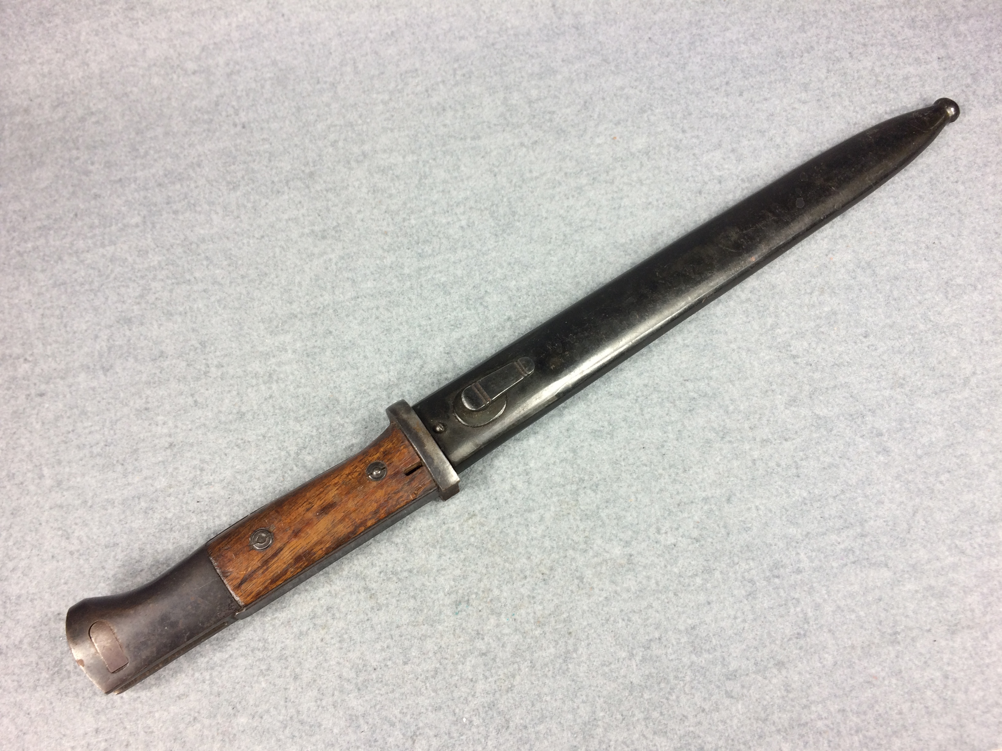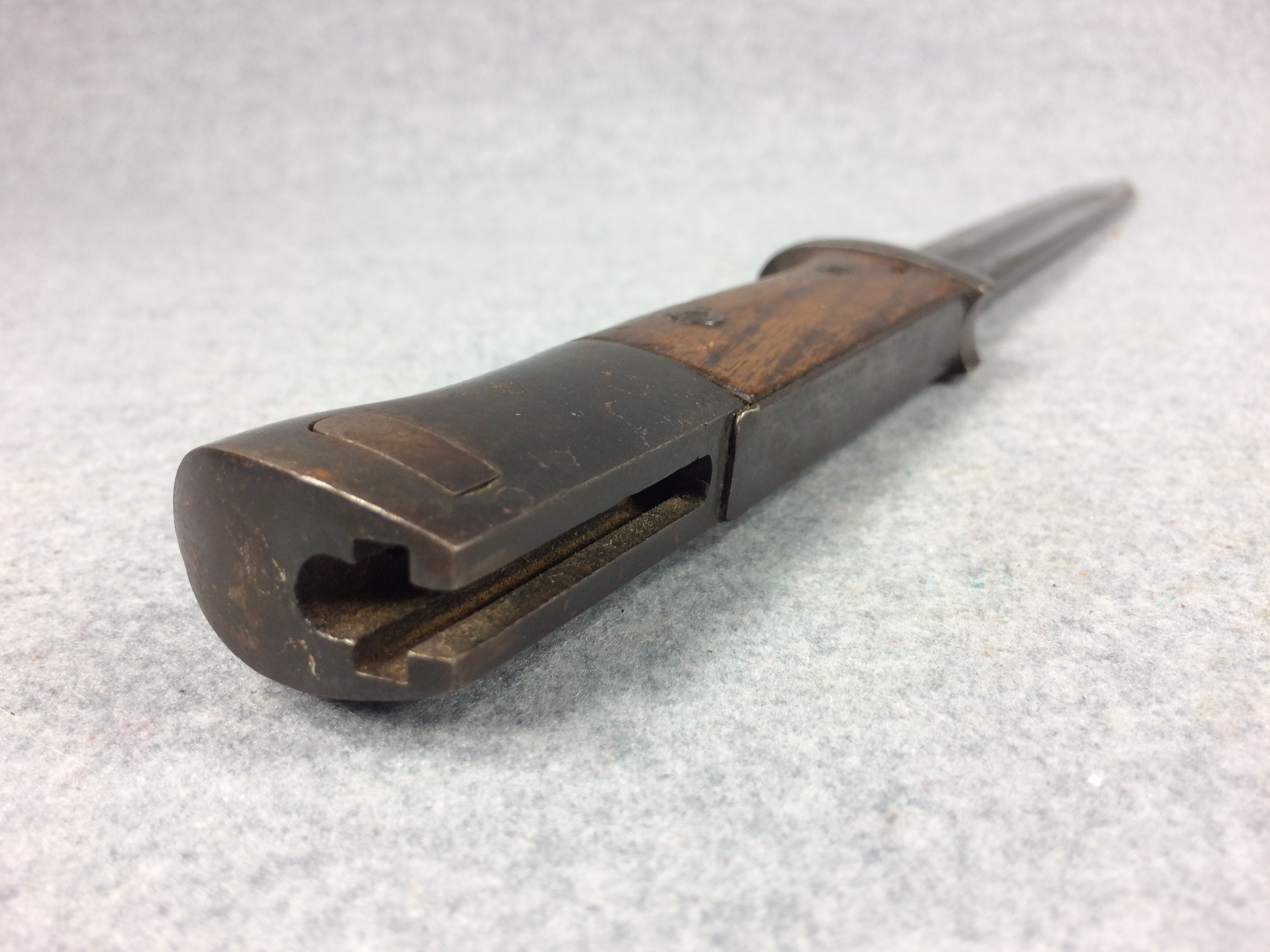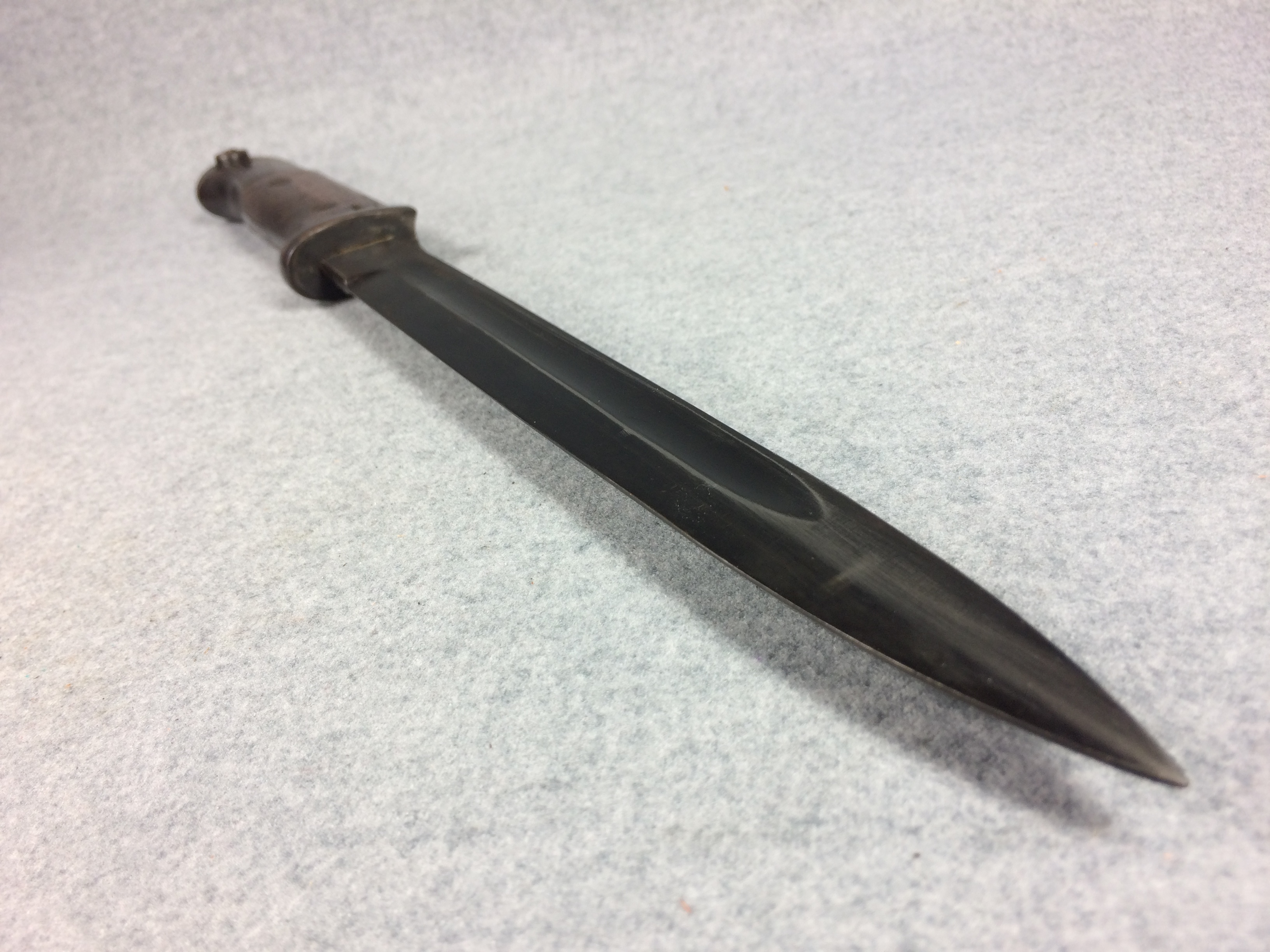 December 24, 2025 - Fixed Blade Bayonet. 15 inches long overall. 9-3/4 inch blade. Wood handle. With scabbard. No visible markings of any kind. Nice vintage condition.