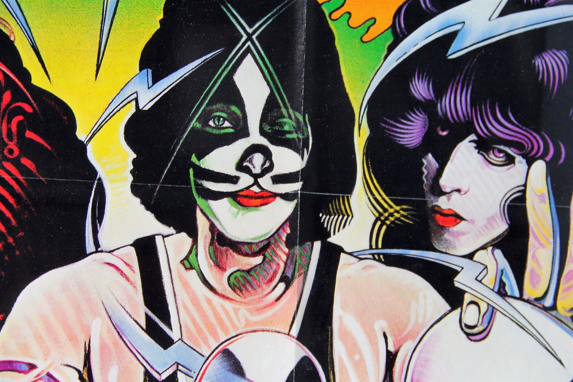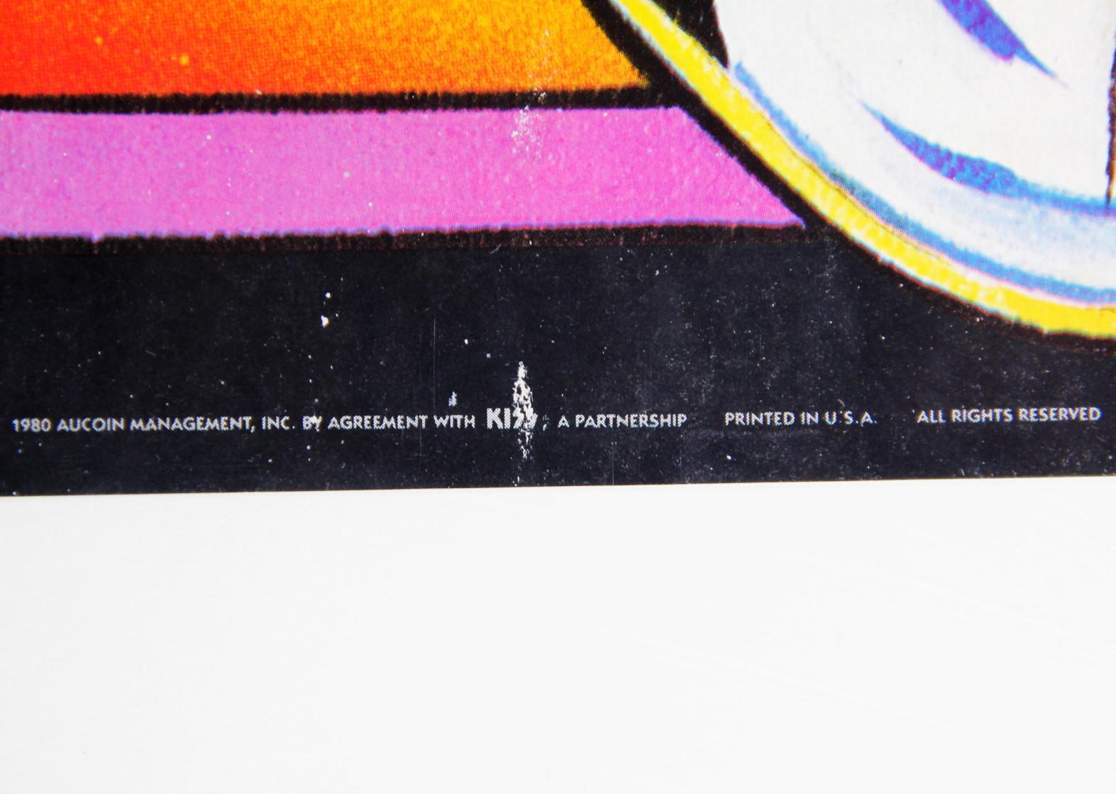 Rare KISS Unmasked LP poster. 24 inches wide by 33 inches tall. Small print reads "Casablanca Records and Filmworks", "NBLP-7225  (c) 1980 CASABLANCA RECORD & FILMWORKS, INC  1980 AUCOIN MANAGEMENT, INC BY AGREEMENT WITH KISS, A PARTNERSHIP  PRINTED IN U.S.A.  ALL RIGHTS RESERVED".