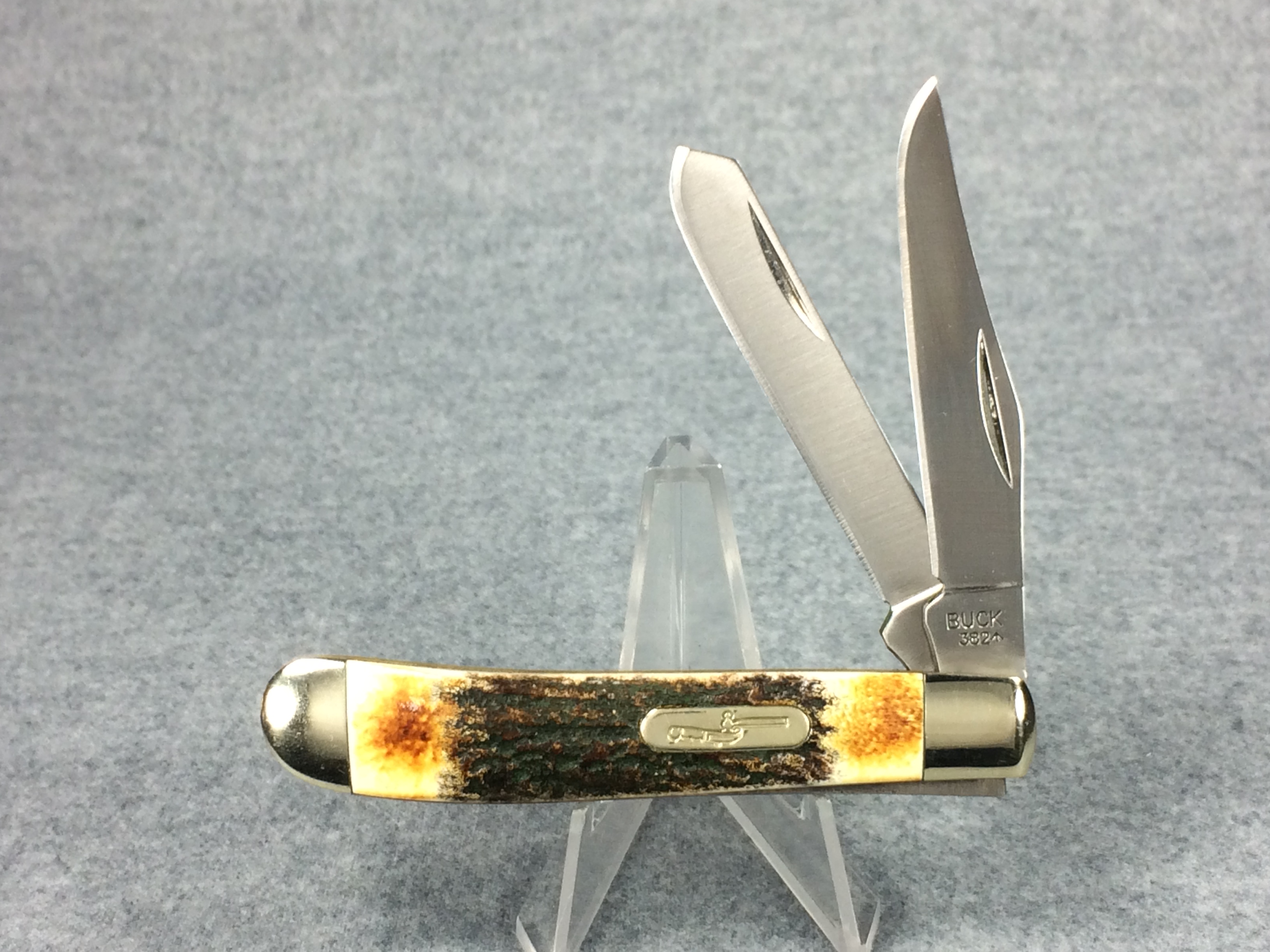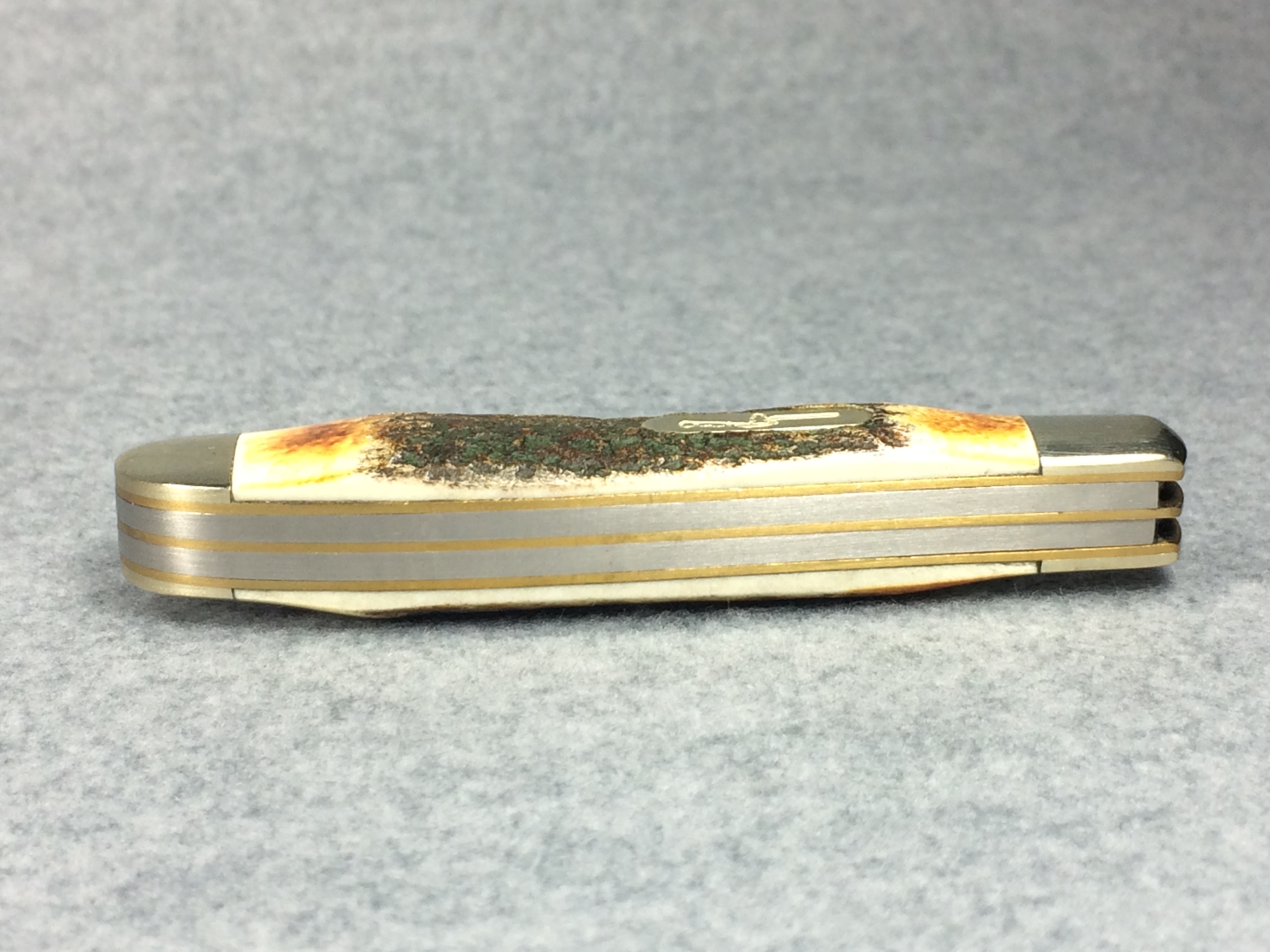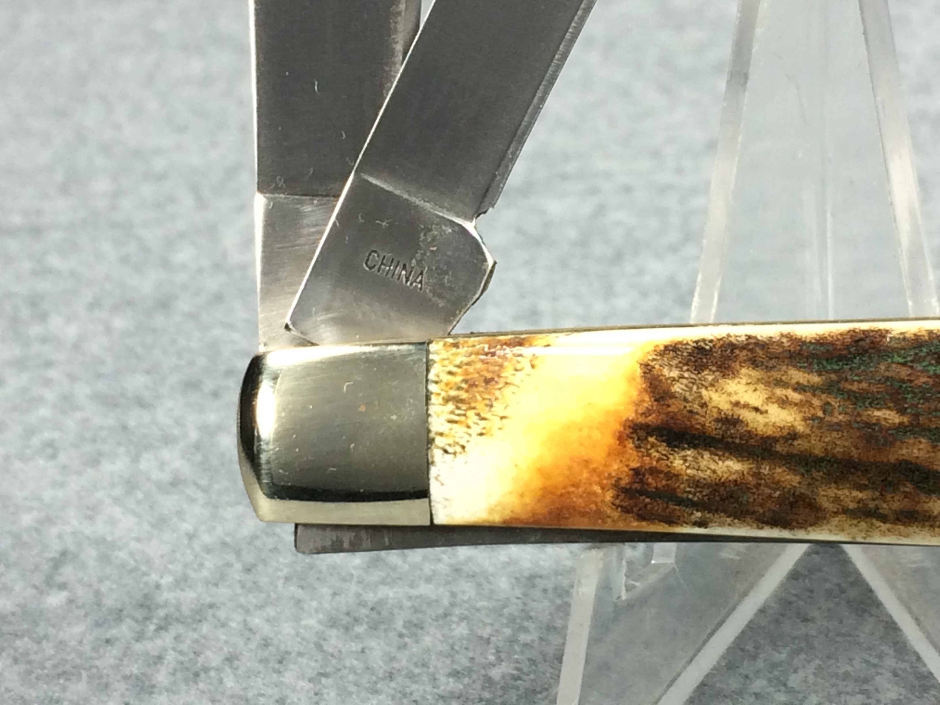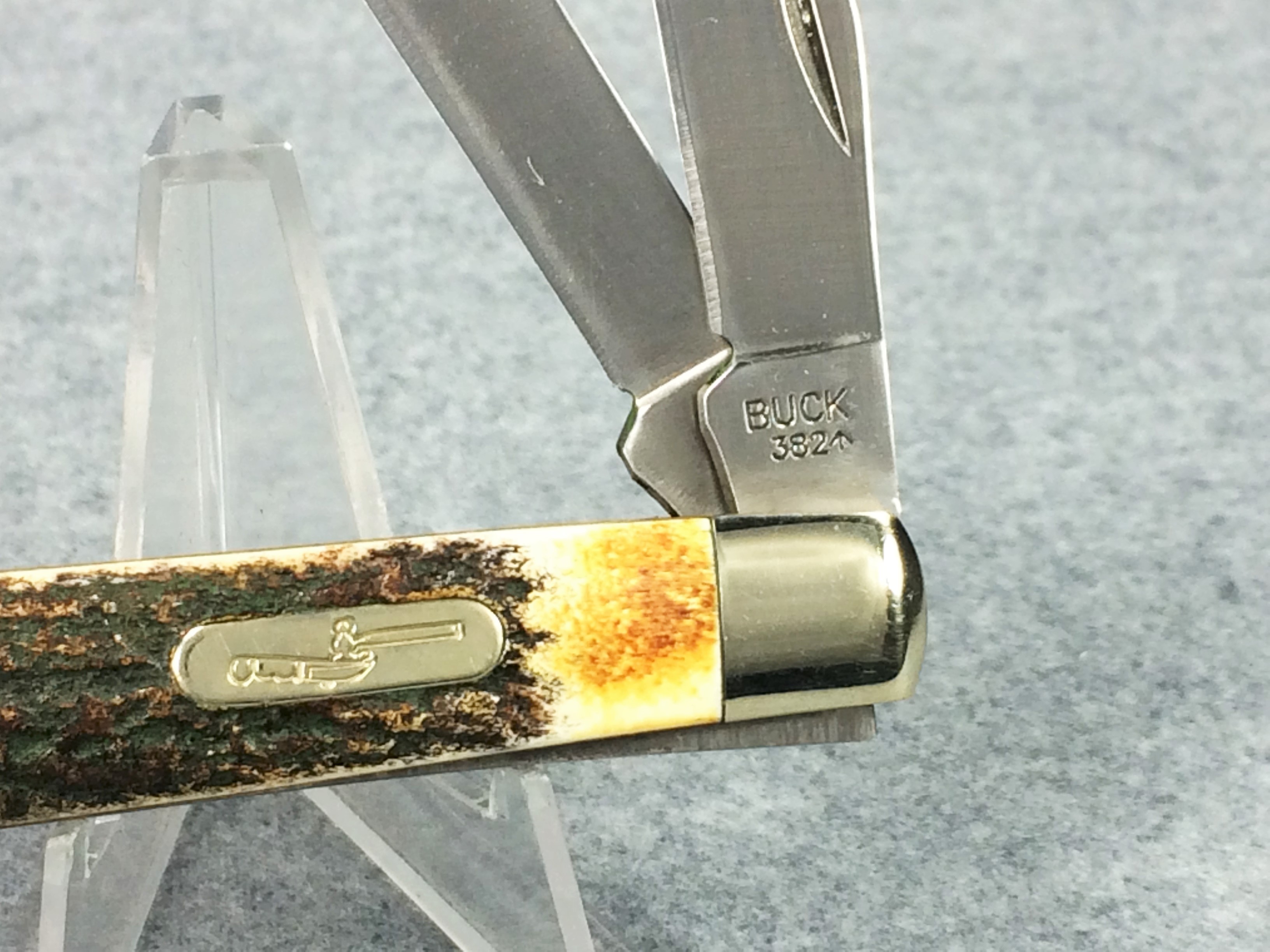 October 26, 2025 - 3-1/2 inches closed. 6-1/8 inches open. "BUCK 382 (symbol for 2008)" and "CHINA" tang stamps. Hammer & Blade shield.  Stag handle. Nickel silver bolsters and brass liner.