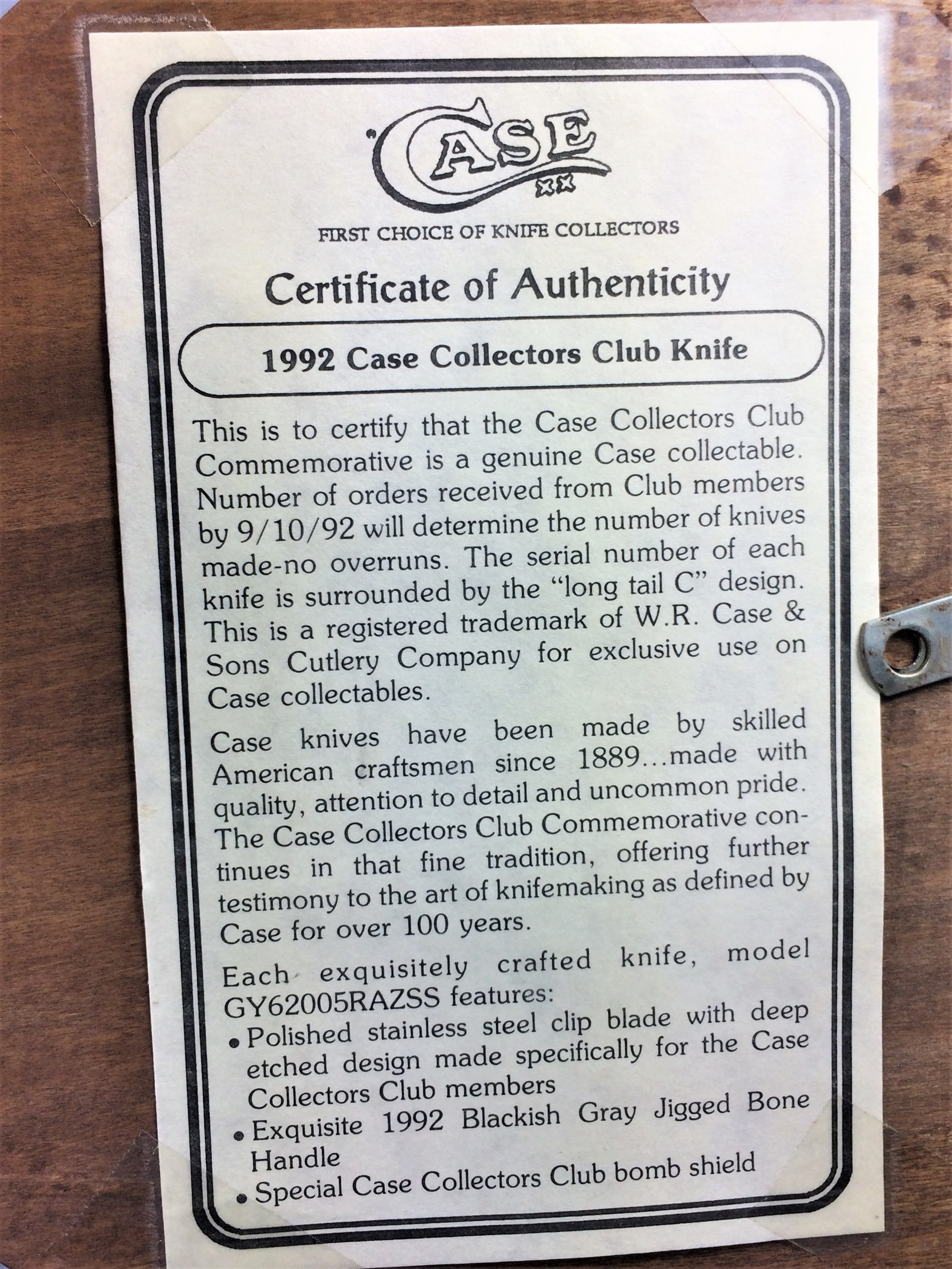 You have: 1992 Case GY62005RAZ SS Gray CCC One Armed Man Razor