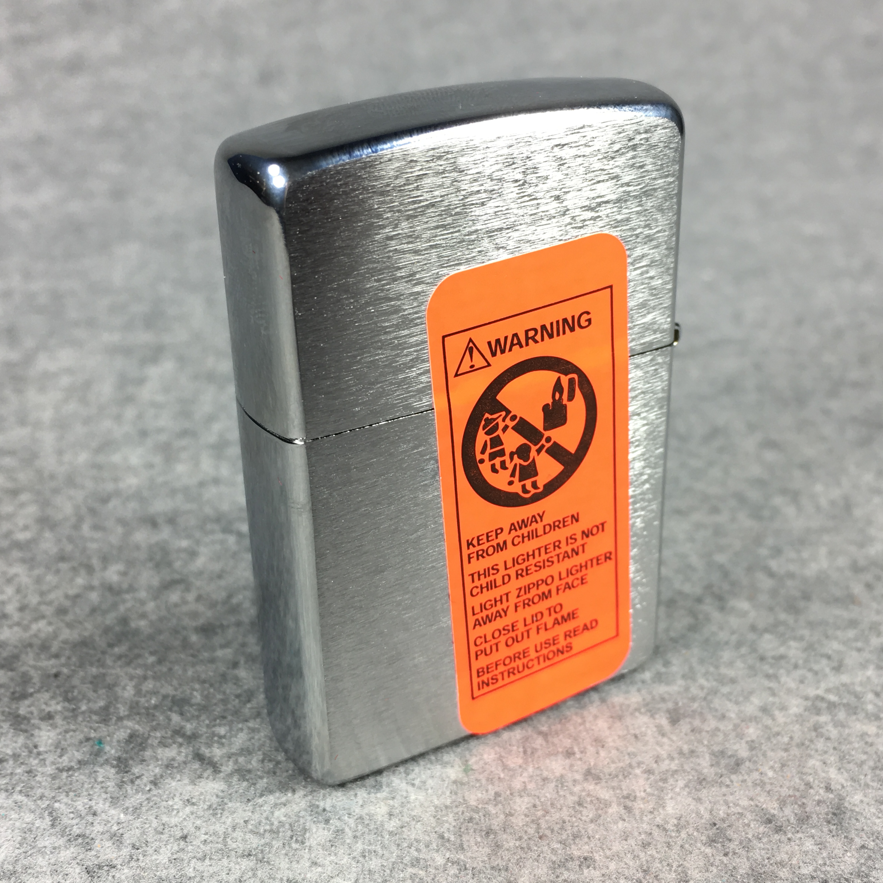 January 14, 2026 - ZIPPO Lighter. Brushed Chrome finish over solid Brass. Standard size 1-7/16 inches wide by 2-1/4 inches high. Bottom of lighter reads: D Zippo 04 Bradford, PA. Made in U.S.A. Sealed.