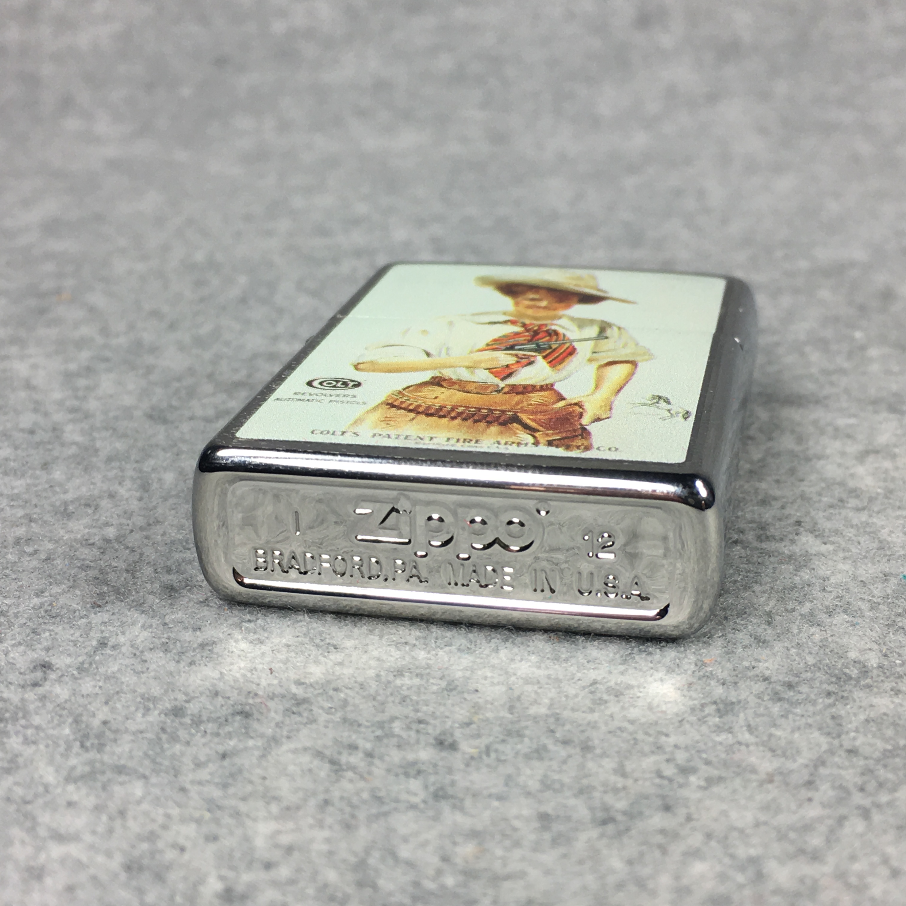 You have: COLT WOMAN HOLDING GUN Brushed Chrome Lighter (Zippo, 2012)