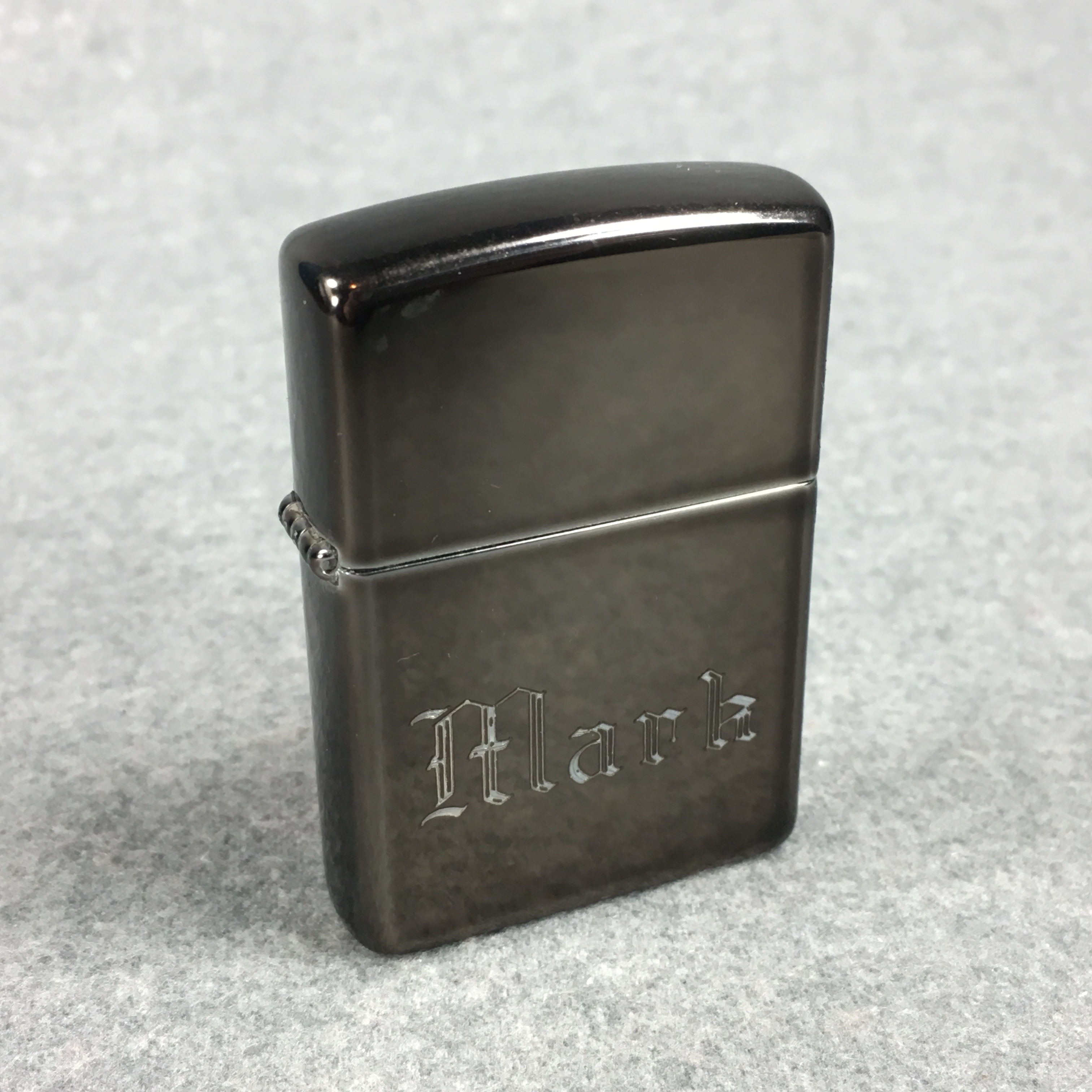 February 23, 2026 - ZIPPO LASER ETCHED "MARK" lighter. Midnight Chrome finish over solid Brass. Standard size 1-7/16 inches wide by 2-1/4 inches high. Bottom of lighter reads: I Zippo XI Bradford, PA. Made in U.S.A. Sealed, no box.