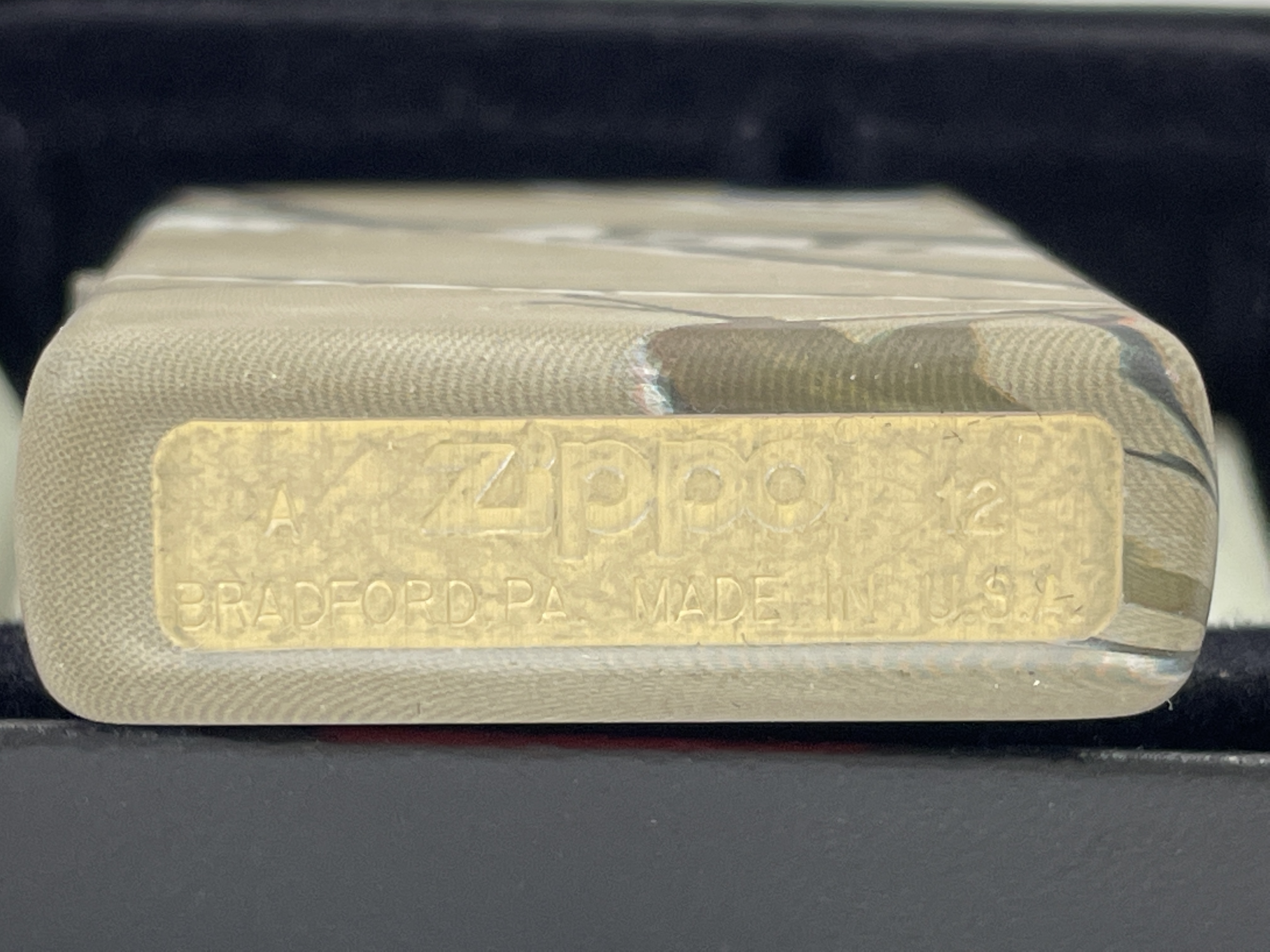 December 07, 2025 - Made in January of 2012. REALTREE APG Camouflage lighter case. Classic Lighter size 1-1/2 inches wide by 2-1/4 inches high. Bottom of lighter reads: A ZIPPO 12 BRADFORD, PA. MADE IN U.S.A.