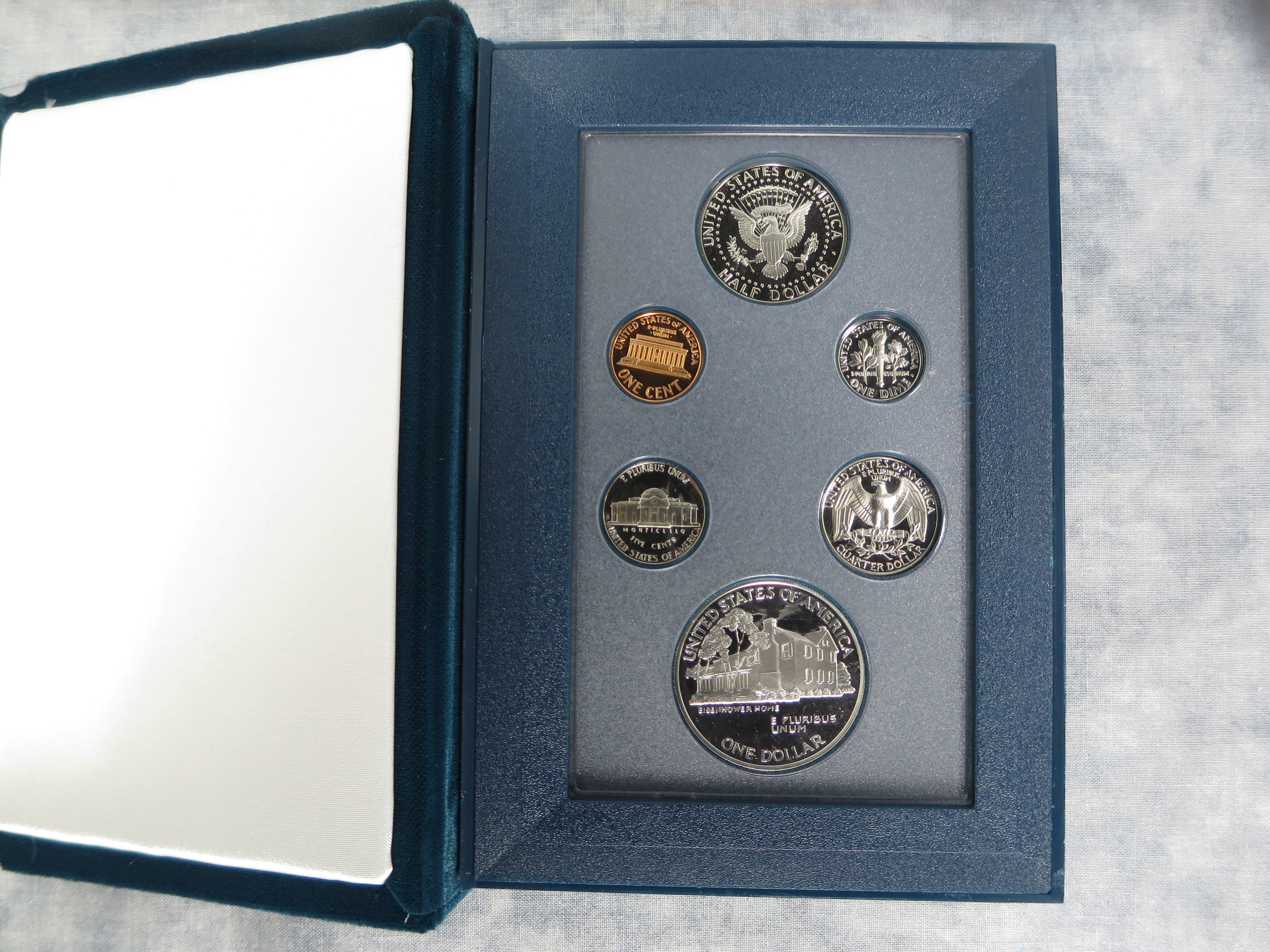 March 15, 2026 - Includes proof Eisenhower Centennial dollar, 26.73 grams of .900 fine silver, half dollar, quarter, dime, nickel, cent, all housed in original U.S. Mint deluxe display and housed in U.S. Mint box, with certificate of authenticity.