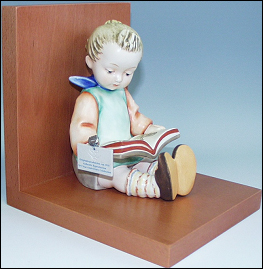 February 23, 2026 - Boy Only. 5-1/2" tall.  Price is for the boy figurine only.  Modeled by master sculptor Reinhold Unger in 1935.  This figurine are weighted with sand through a hole on the bottom and closed with a cork or plastic plug.  Sometimes sealed with a paper sticker and inscription "75 Years Goebel."  The boy figurine was made only as part of bookend set and not normally sold separately.  This policy, however, was changed and the boy could be purchased alone and unweighted.  This was done mainly to satisfy collectors who desired a figurine to match the 1980 Annual Bell that had a motif similar to the bookend boy.  In 1981, HUM 415 "Thoughtful" was released in the U.S. market to match the annual bell.  "Bookworm" bookends were "temporarily withdrawn" (TW) from production on December 31, 1989.  Bookworm boy has been found with number "14" only (NO "A") incised on the bottom.  Boy was called "Learned Man" in very old catalogues.