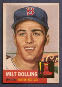 Issued as part of the 1953 Topps set of baseball cards, which reflects the company's continuing legal battles with Bowman. The set, originally intended to consist of 280 cards, is lacking six numbers (numbers 253, 261, 267, 268, 271, and 275) which probably represent players whose contracts were lost to the competition. The 2-5/8" by 3-3/4" cards feature painted player pictures. A color team logo appears at the bottom panel (red for American League and black for National). Card backs contain the first baseball trivia questions along with brief statistics and player biographies. In the red panel at the top which lists the player's personal data, cards from the 2nd Series (numbers 86-165 plus 10, 44, 61, 72, and 81) can be found with that data printed in either black or white, black being the scarcer variety. Card numbers 221-280 are the scarce high numbers.
