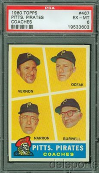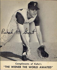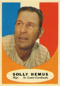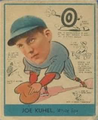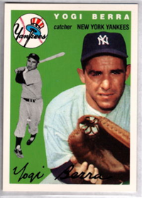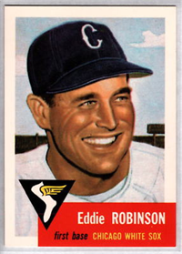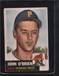 This card is one of 250 cards issued in the 1954 Topps set. This set was the first issue to use two player pictures on the front and is very popular today. Solid color backgrounds frame both color head-and-shoulders and black and white action pictures of the player. The player's name, position, team and team logo appear at the top. Backs include an "Inside Baseball" cartoon regarding the player as well as statistics and biography. The cards measure 2-5/8" by 3-3/4" and include manager and coaches cards. This was the first set to use two players together on a modern card; the players were, appropriately, the O'Brien twins.