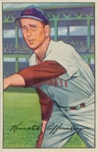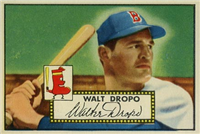 This card is one of 407 cards in the 1952 Topps set, the largest set of its day- both in number of cards and physical dimensions of the cards. Cards in this set are 2-5/8” by 3-3/4” with a hand-colored black and white photo on front. Major baseball card innovations presented in the set include the first-ever use of color team logos as part of the design, and the inclusion of stats for the previous season and overall career on the backs. A major variety in the set is that the first 80 cards can be found with backs printed entirely in black or black and red. Backs entirely in black command a $10-15 premium. Card numbers 311-407 were printed in limited supplies and are extremely rare.