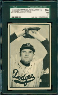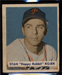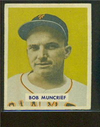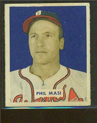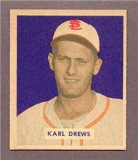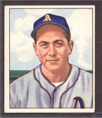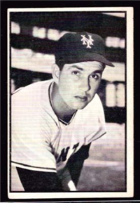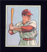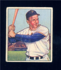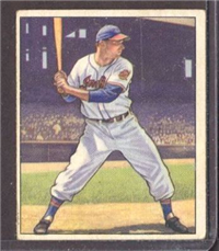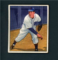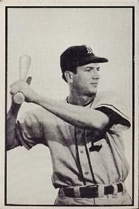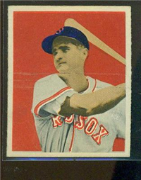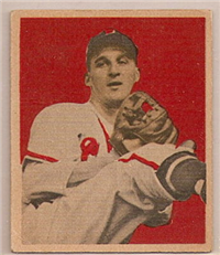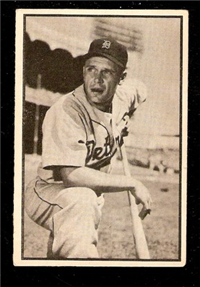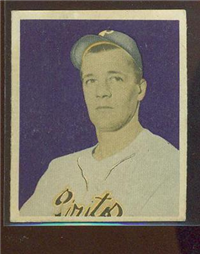 Bowman Gum Co.'s premiere set was produced in 1948, making it one of the first major issues of the post war period. Forty-eight black and white cards comprise the set, with each card measuring 2-1/6" by 2-1/2" in size. The card backs, printed in black ink on grey stock, include the card number and the player's name, team, position, and a short biography. Twelve cards (#'s 7, 8, 13, 16, 20, 22, 24, 26, 29, 30 and 34) were printed in short supply when they were removed from the 36-card printing sheet to make room for the set's high numbers (#'s 37-48). These 24 cards command a higher price than the remaining cards in the set.