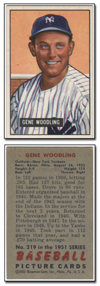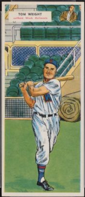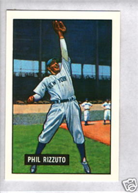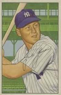 In 1951, Bowman increased the number of cards in its set for the 3rd consecutive year when it issued 324 cards. The cards are, like 1950, color art reproductions of actual photographs but now measure 2-1/16" by 3-1/8" in size. The player's name is situated in a small, black box on the card front. Several of the card fronts are enlargements of the 1950 version. The high-numbered series of the set (#'s 253-324), which includes the rookie cards of Mantle and Mays, are the scarcest of the issue.