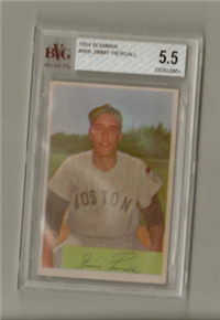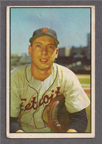 The 1954 Bowman set consists of 224 full color cards that measure 2-1/2" by 3-3/4". It is believed that contractual problems caused the pulling of card #66 (Ted Williams) from the set, creating one of the most sought-after scarcities of the postwar era. The Williams card was replaced by Jim Piersall (who is also #210) in subsequent print runs. The set contains over 40 variations, most involving statistical errors on the card backs that were corrected. On most cards neither variation carries a premium value as both varieties appear to have been printed in equal amounts. The complete set price does not include all of the variations of #66 Williams.