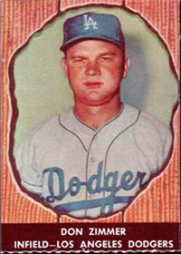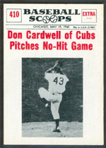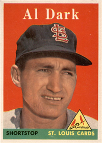 This card is one of the 494-card set released in 1958--as Topps continued to expand its set in size. One card (# 145) was not issued after Ed Bouchee Was suspended from baseball. Cards retained the 2-1/2" by 3-1/2" size. There are a number of variations, including yellow or white lettering on 33 cards between numbers 2-108 (higher priced yellow letter variations that are checklisted, are not part of the complete set prices). The number of multiple-player cards was increased. A major innovation is the addition of 20 "All-Star" cards. For the first time, checklists were incorporated into the numbered series, as the backs of team cards.