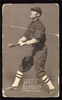 The 1914 Zeenut cards measure 2" x 3" x 3 1/2" without the coupon and feature black and white photos on a gray, borderless background. 146 different poses have been found. The backs are blank.