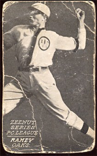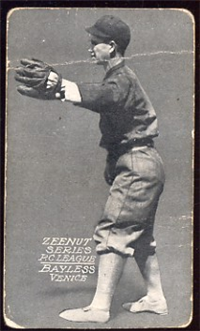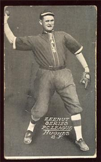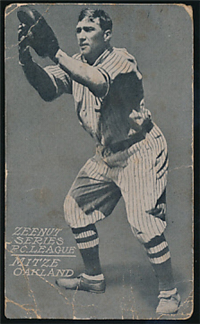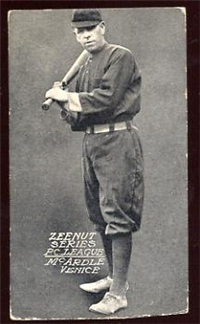 Little is known about the origin of this 50-card set issued in 1914 and designated as E224 in the American Card Catalog. Measuring 2 3/8" by 3 1/2", the front of the cards feature sepia-toned photos with the player's name in capital letters and his team below in parentheses. The back carries a biography and nmost cards, though not all, include year-by-year statistics at the bottom. The words "Texas Tommy" appear at the top, apparently referring to the sponsor of the set, although it is still unclear who or what "Texas Tommy" was, and despite its name, most examples of this set have been found in northern California. There is also a second variety of the set, smaller in size (1 7/8" by 3") which are borderless pictures with a glossy finish.