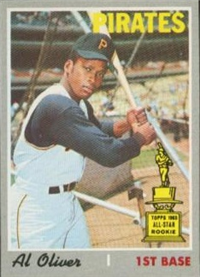 1 3/8" by 2 1/4" Un-Numbered. Front: Color player drawing set against colored background with player name, team and league below. Back: Blank.