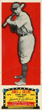This unnumbered card was issued in the rare 47-card set, circa 1911, which were printed on the back of "Baseball Bats" penny candy. The cards themselves measure approximately 1-3/8" by 2-3/8" and feature a black and white player photo surrounded by an orange or white border. The players name and team are printed in small, black capital letters near the bottom of the photo.