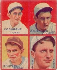 2 7/16" by 3 1/2" Unnumbered. Front: Two player portraits separated by crossed bats. Back: Green-tinted back. There were 52 different cards but only 19 of them feature baseball players.
