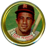 1 3/8" by 2 1/2" Numbered. Front: Crude color drawing of player, name, position, team and league below, card number in lower portion of image area. Back: Blank.