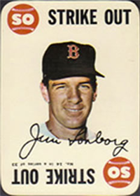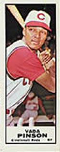 2 1/4" by 4 11/16" Front: Player lithograph with player's name in black script at upper left. Back: Player statistics against red background.