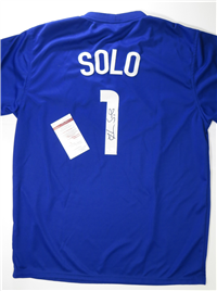 This is a size XL United States Women's National Team #1 Jersey signed by Hope Solo herself and authenticated by James Spencer Authentication, LLC. Everything is sewn on the jersey. It is hand-signed in black felt tip pen. The jersey is in near mint to mint condition and is accompanied by its certificate of authenticity and hologram sticker with matching WP88702 serial number.