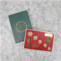 This set contains 1 Rouble, 50 Kopecks, 20 Kopecks, 15 Kopecks, 10 Kopecks, 5 Kopecks, 3 Kopecks, 2 Kopecks, 1 Kopeck and a Leningrad Mint token, all house in a Mint issued Lucite coin holder with green envelope.