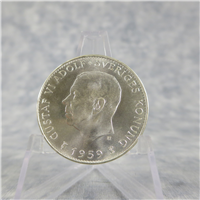 34mm. 18 grams. .400 silver. King Gustav VI Adolf/150th Anniversary of the Constitution of Sweden 5 Kroner coin.