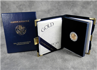 Philadelphia Mint. Includes $5 gold American Eagle proof in plastic holder and housed in velvet-lined display, boxed in U.S. Mint box, with certificate of authenticity. Contains 3.11 grams of pure gold.