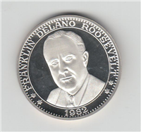 39mm diameter pure 999 silver proof issued by National Historic Mint in 1982. Obverse: bust of Roosevelt. Reverse: Double eagle coat of arms. Weighs ~32 grams.