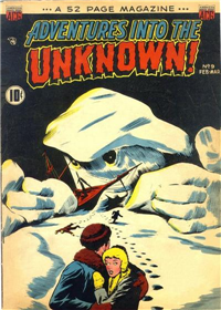 Black and white reproductions of White Indian, Looie Lazybones, Heroic Comics, Botalye, and the famous Untamed Love