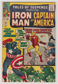 December, 1964. Stan Lee, Don Heck Iron Man story: "Suspected of Murder!", re-introducing the sensational Hawkeye and the beautiful Black Widow; Stan Lee, Jack Kirby Captain America story: "The Army of Assassins Strikes!"