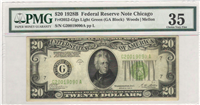 4-3/8 inches x ~2-3/16 inches. Pinkish paper on obverse (front). Black with red seal and with bluish tint on right of front. Green back. Bust of William H. Crawford, left. Series of 1875. Engraved by Bureau of Engraving & Printing.