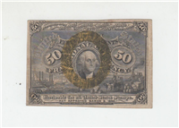 2-3/4 inches x 1-7/8 inches. Black. Purple back. Bust of George Washington, center. Act Approved March 3, 1863. Engraved and printed at the Treasury Department. Lacking 18 and 63 overprints on reverse at lower corners.