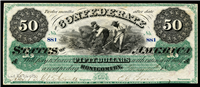 178,716 issued. Black. Blank back. Hope with anchor at center, R.M.T. Hunter left, C.G. Memminger right. Lithographic date, 'September 2, 1861'. Printed by Keatinge & Ball, Richmond, Va. Contemporary counterfeits are known and are of similar value.