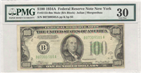 ~4-3/4 inches x 2-1/2 inches. Black and red on cream paper. Thirty Shillings at top front; along with legal text and wood block, with signatures at bottom right. 'Printed by Isaac Collins, 1776' on reverse along with other text, wood block of leaf.